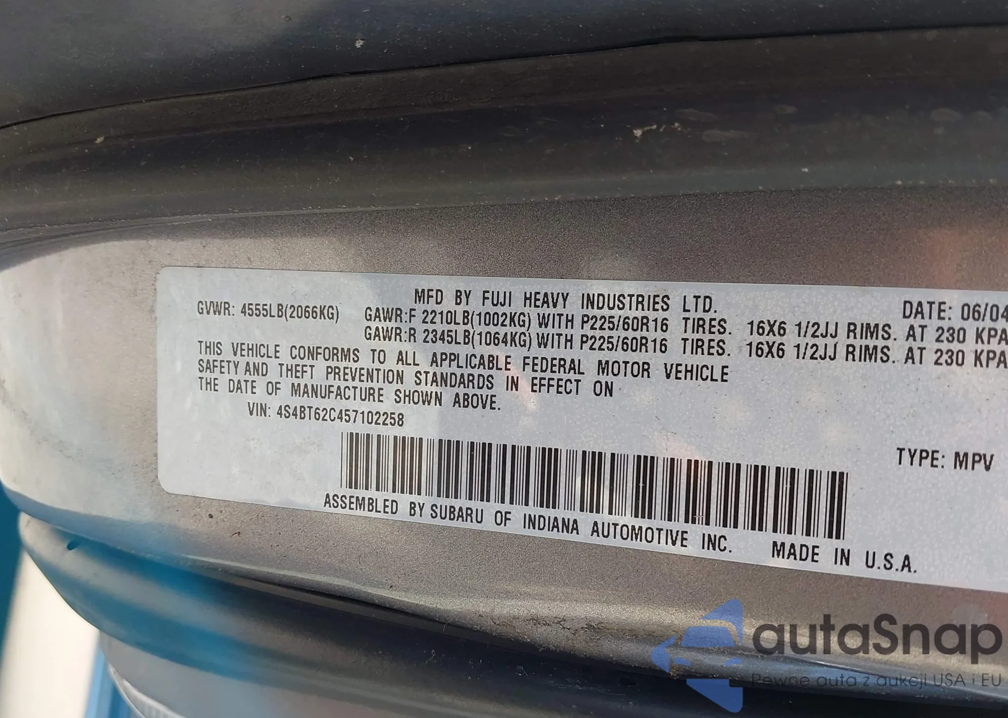 • VIN 4S4BT62C457102258