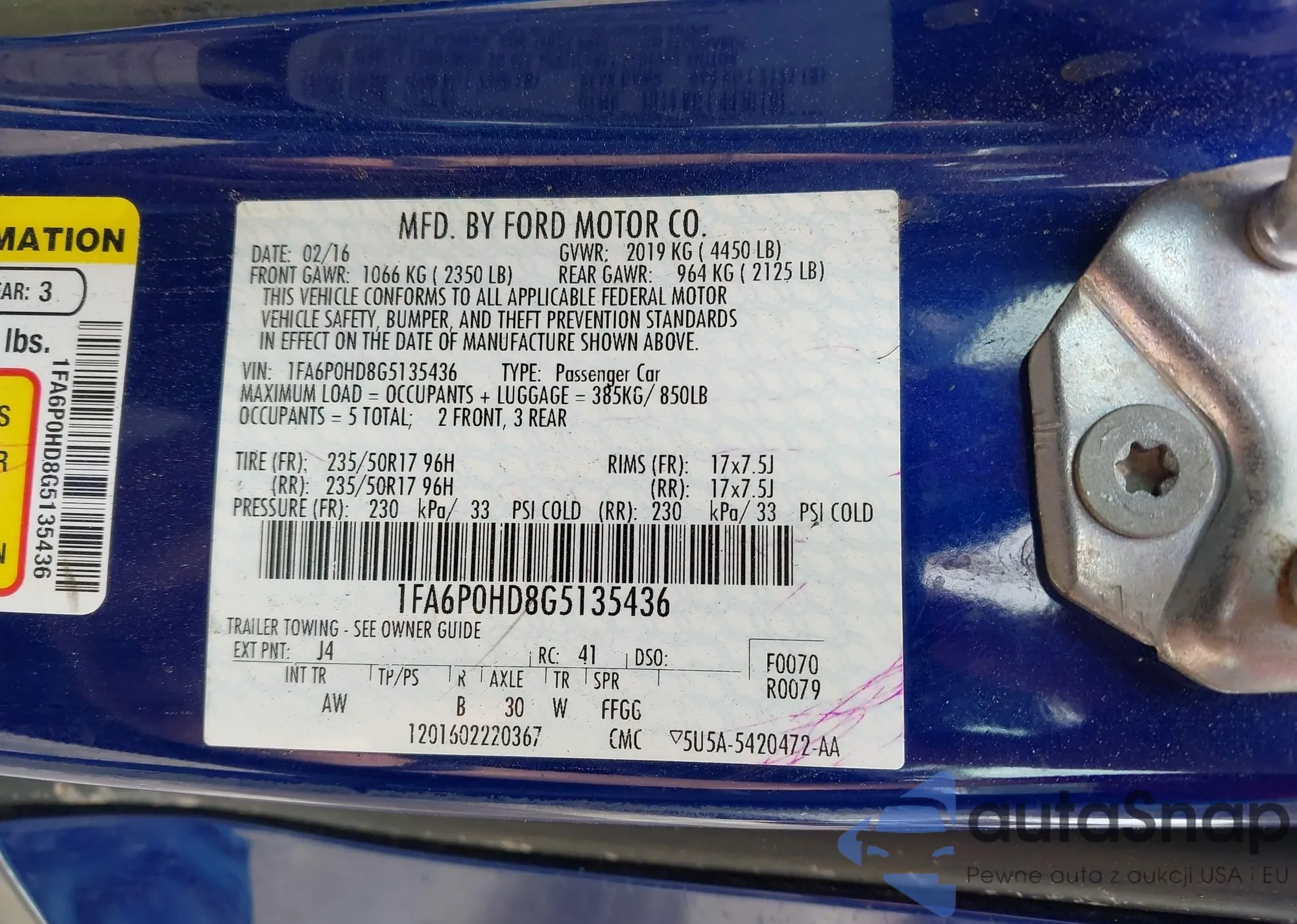 • VIN 1FA6P0HD8G5135436