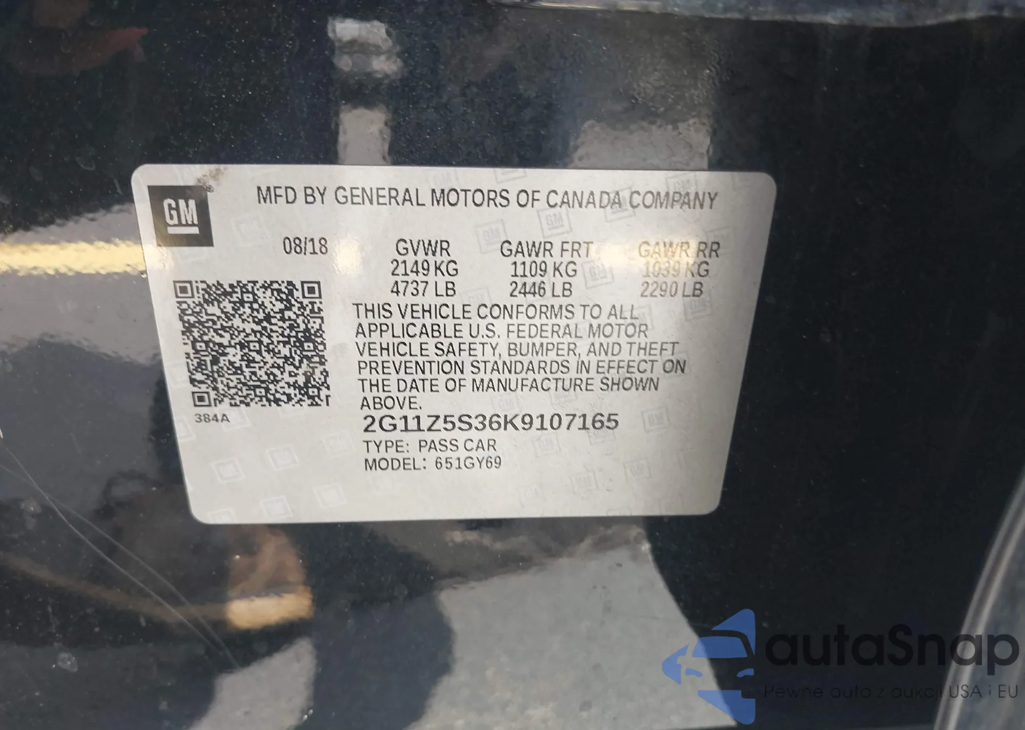 • VIN 2G11Z5S36K9107165