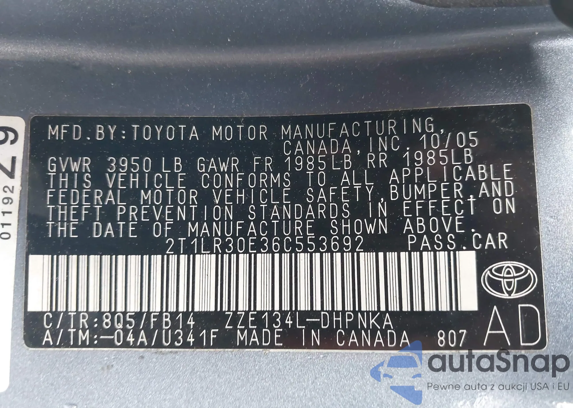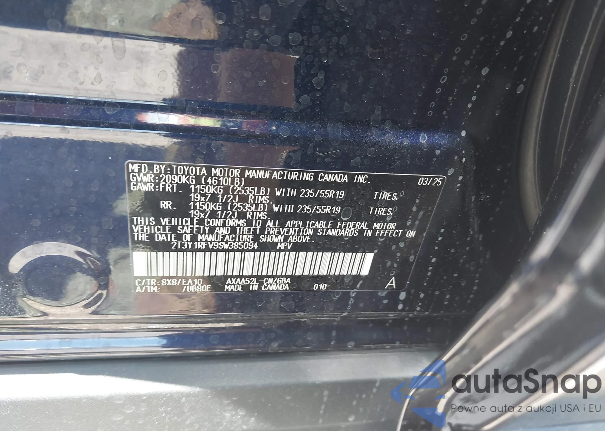 • VIN 2T3Y1RFV9SW385094
