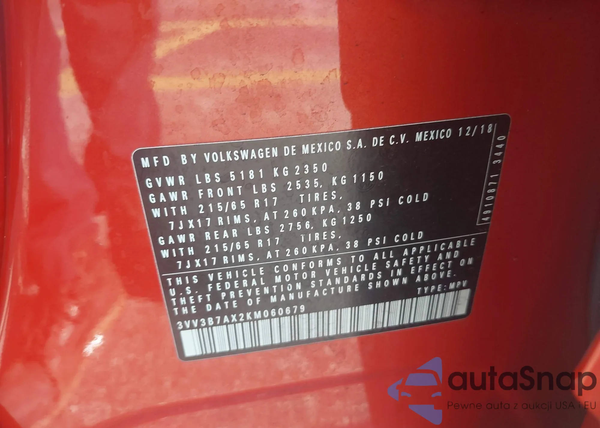 • VIN 3VV3B7AX2KM060679