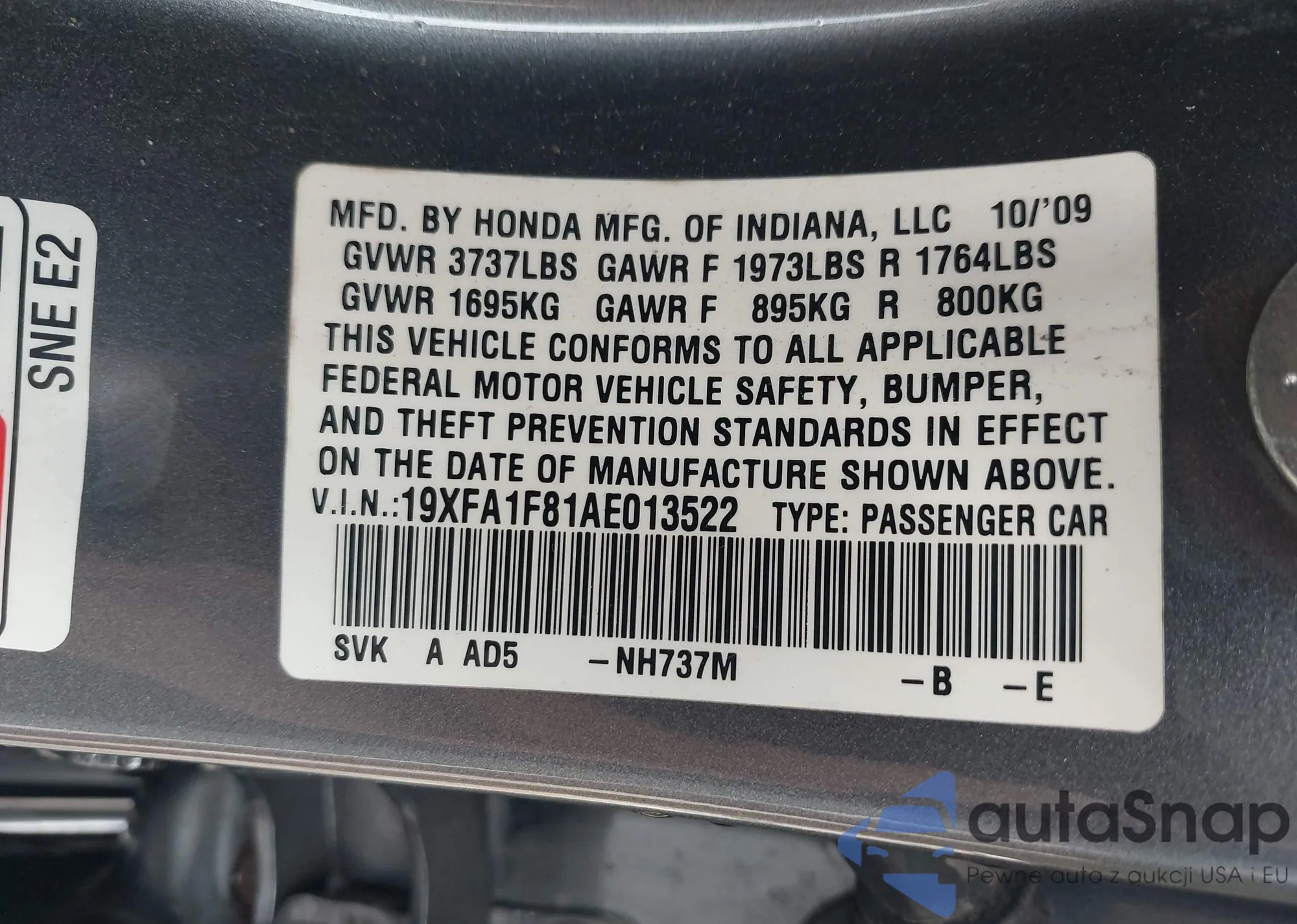 • VIN 5J6RW1H87HL006159