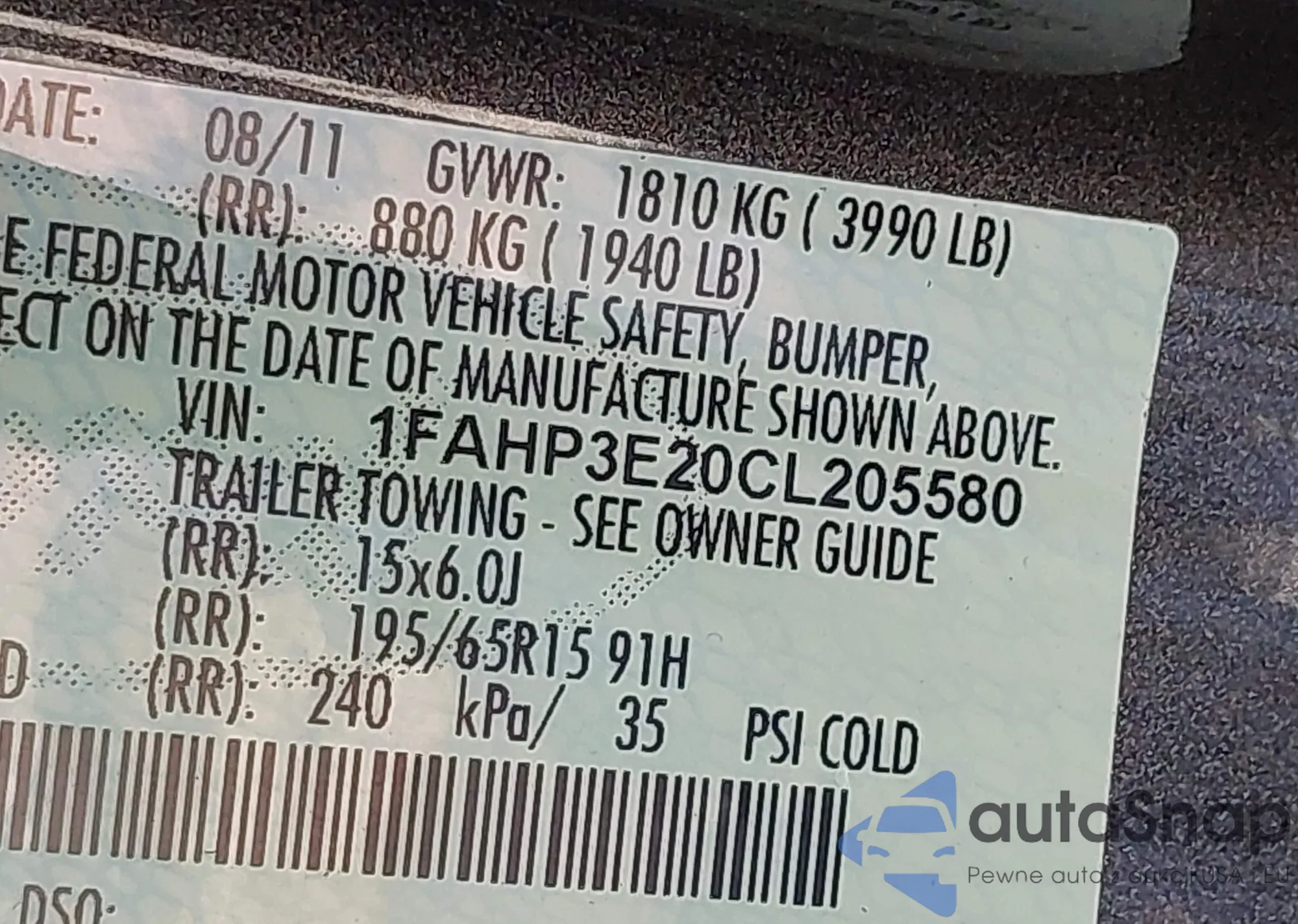 • VIN 1FAHP3E20CL205580