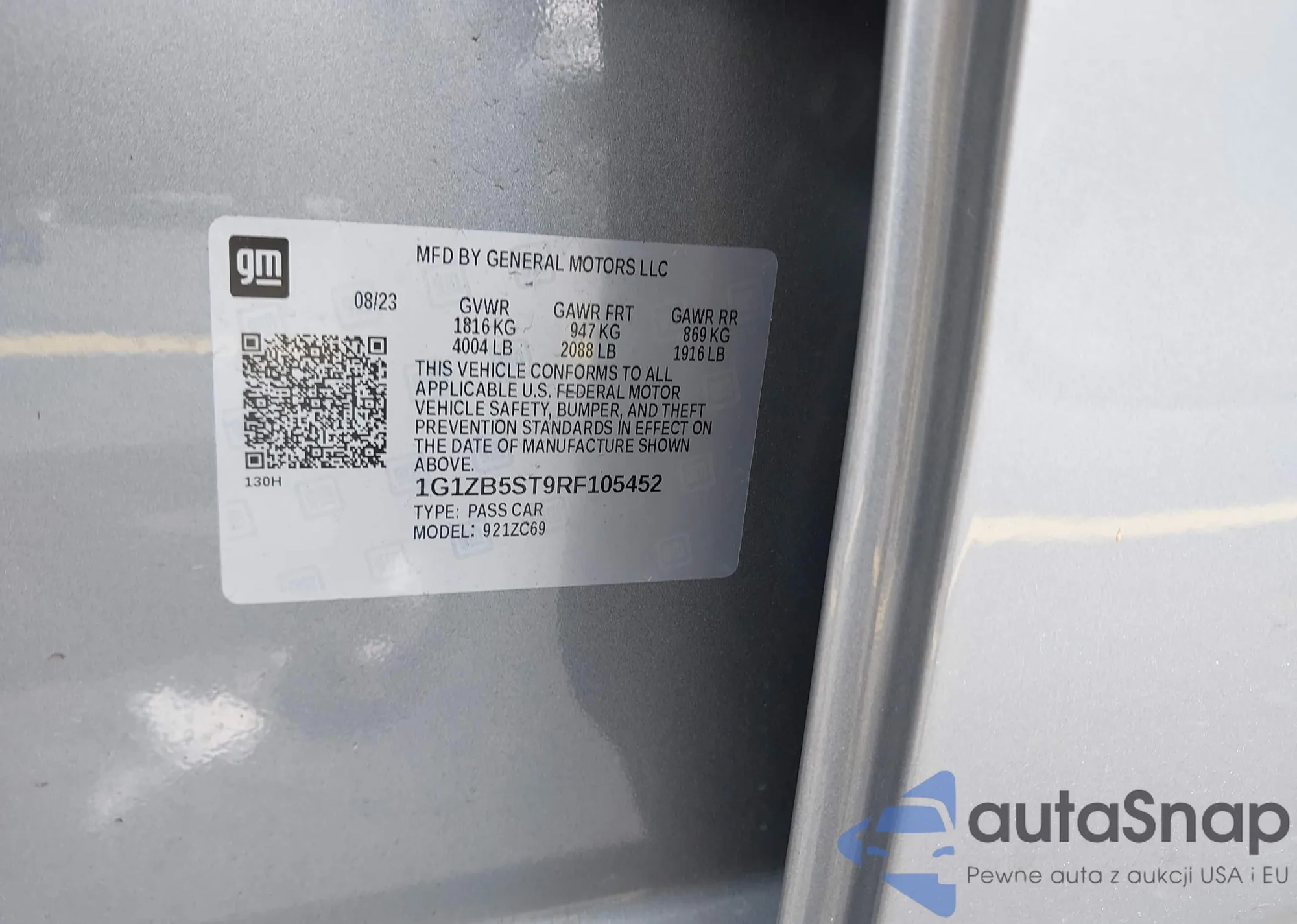• VIN 1G1ZB5ST9RF105452