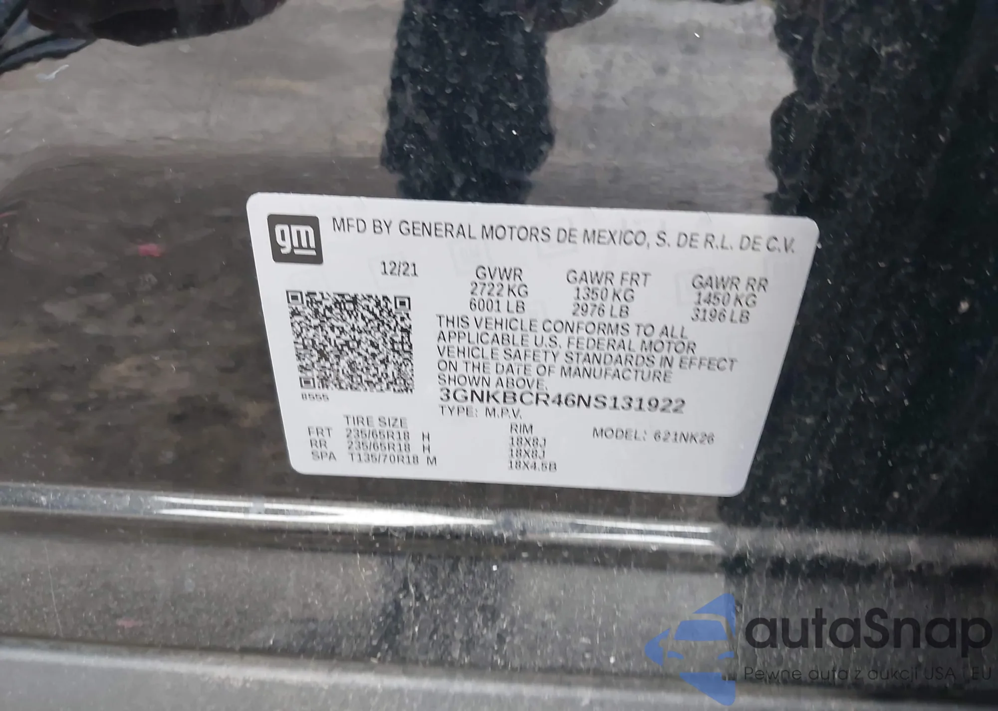 • VIN 3GNKBCR46NS131922