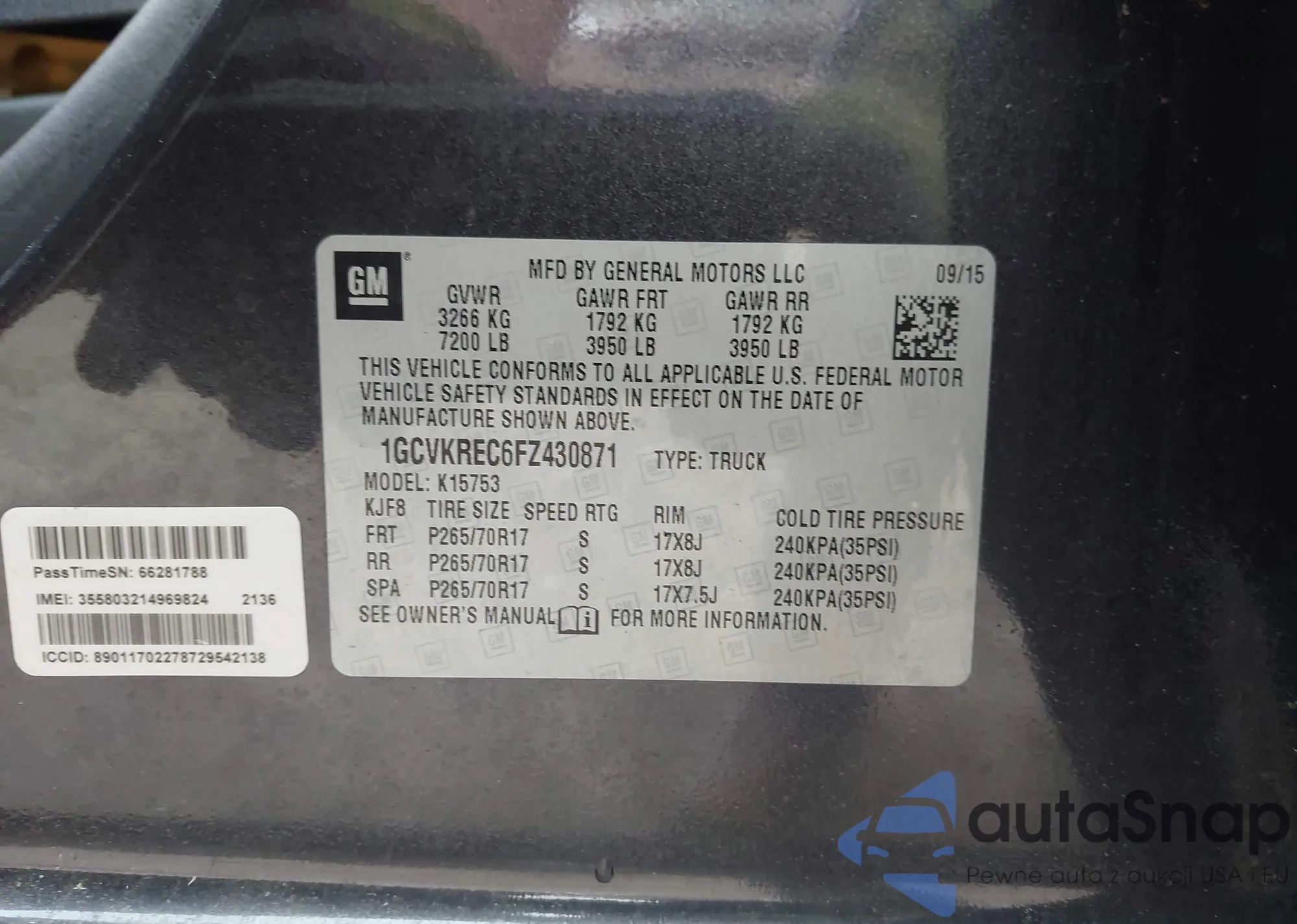 LOT: 42355404 VIN: 1GCVKREC6FZ430871