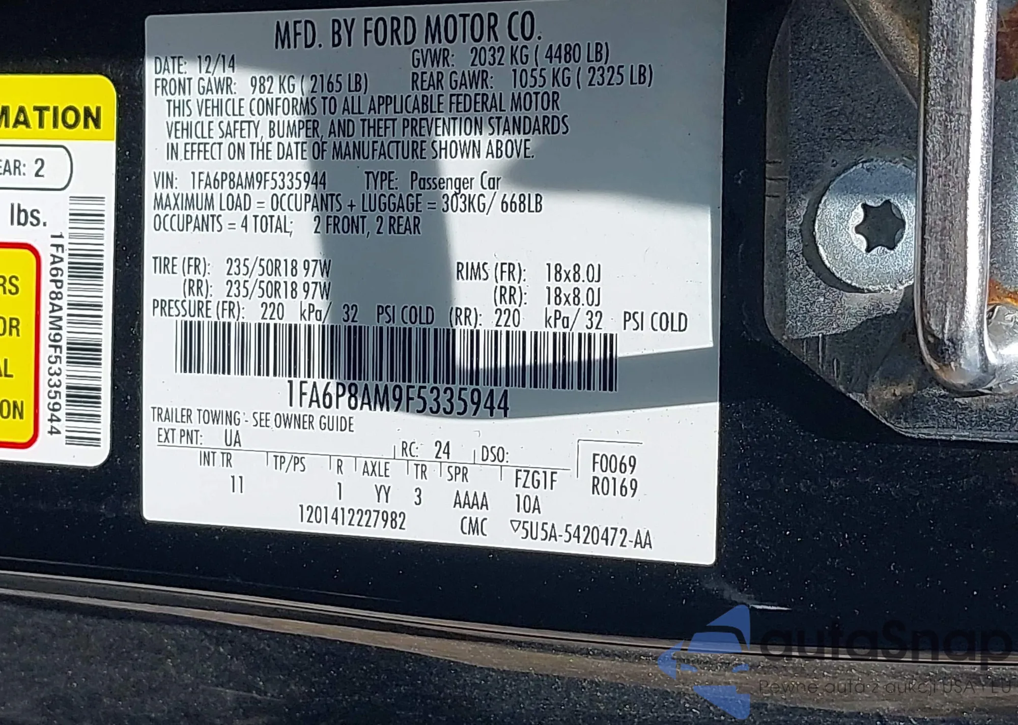 • VIN 1FA6P8AM9F5335944