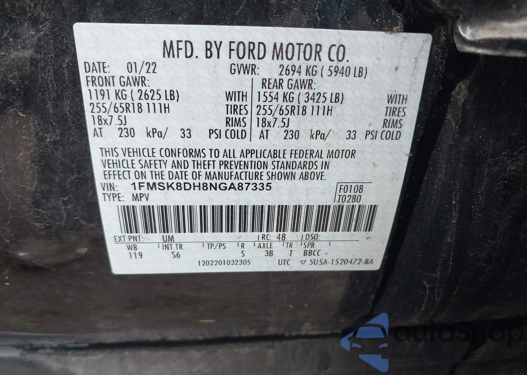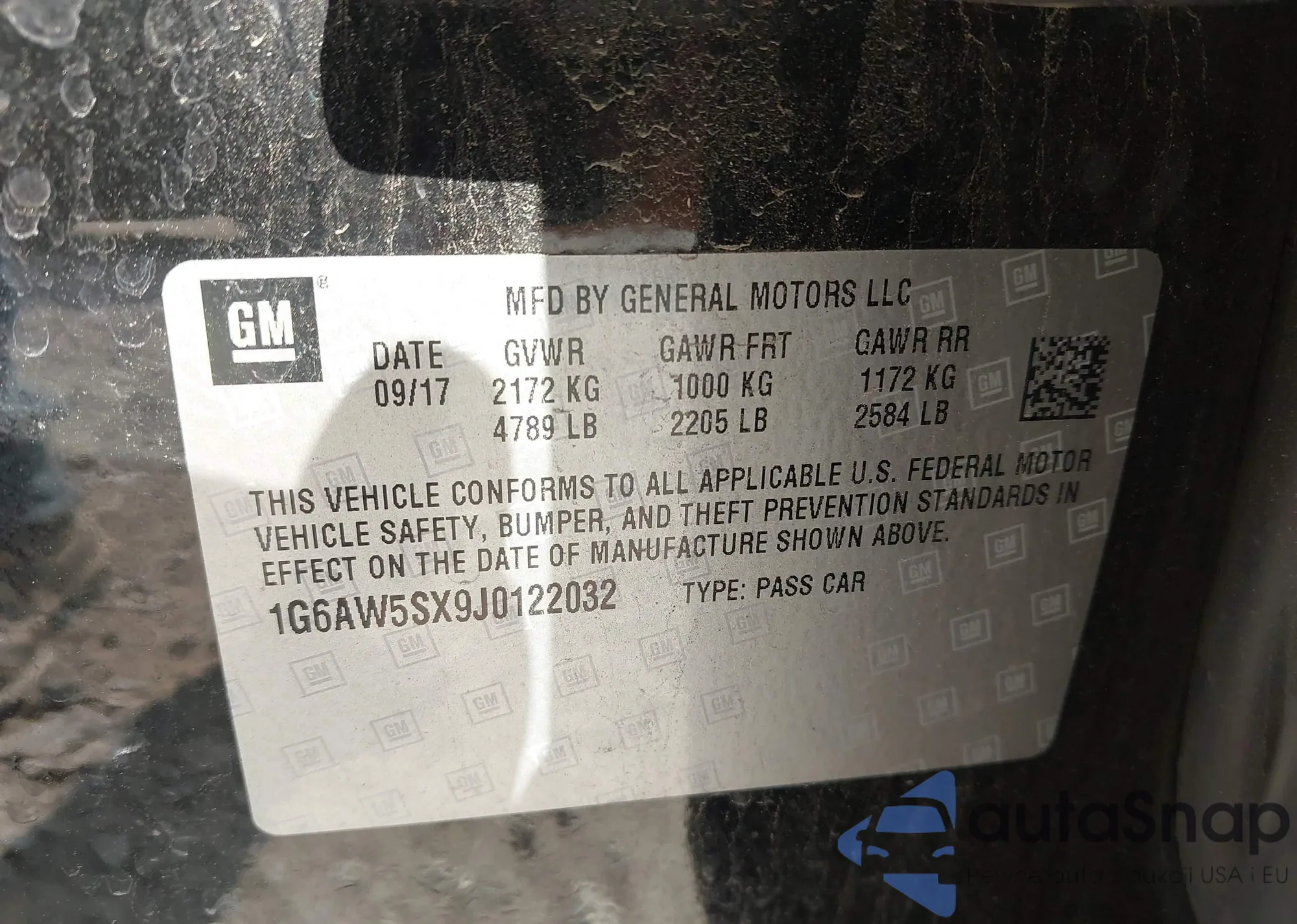 • VIN 1G6AW5SX9J0122032