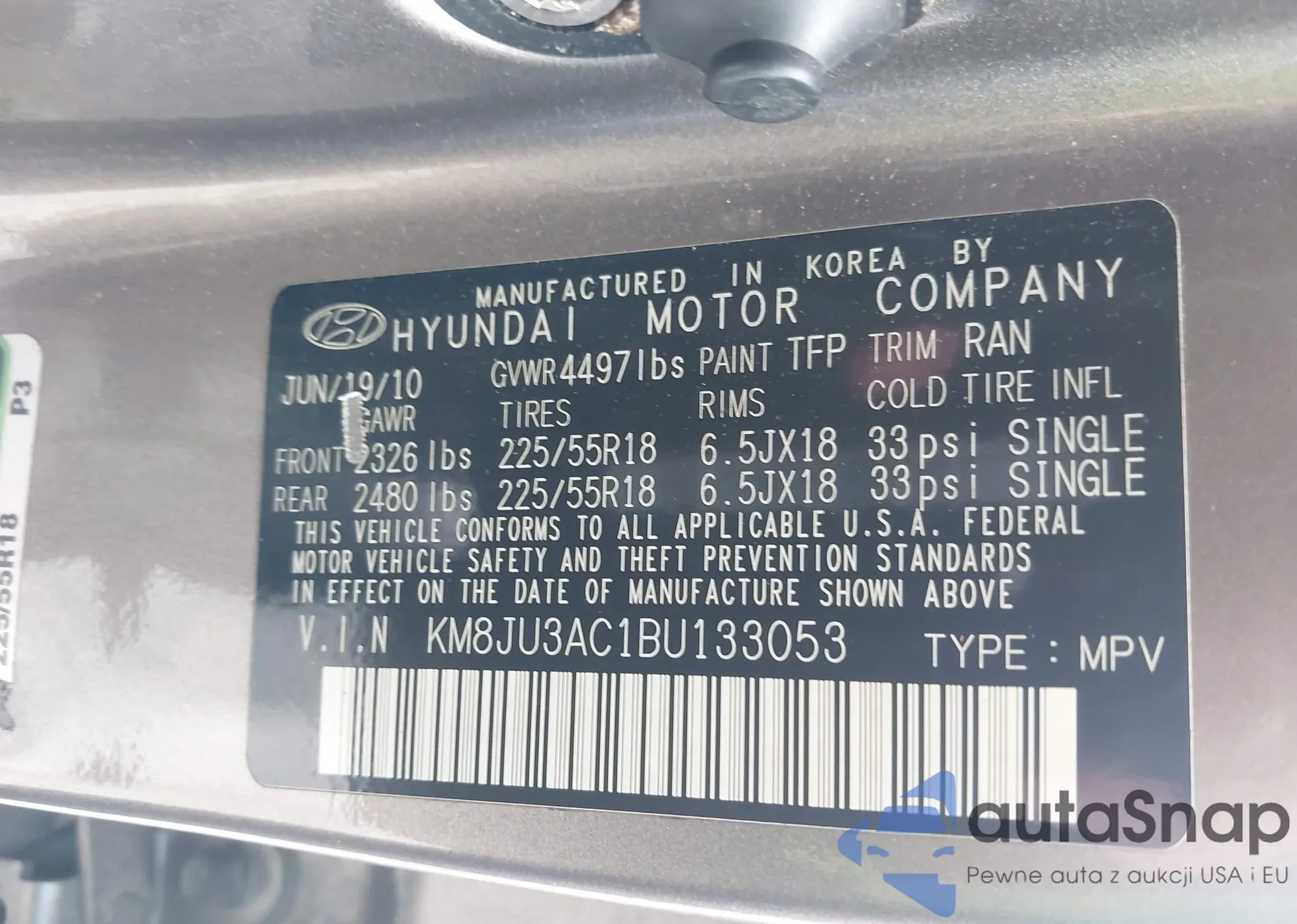 • VIN KM8JU3AC1BU133053