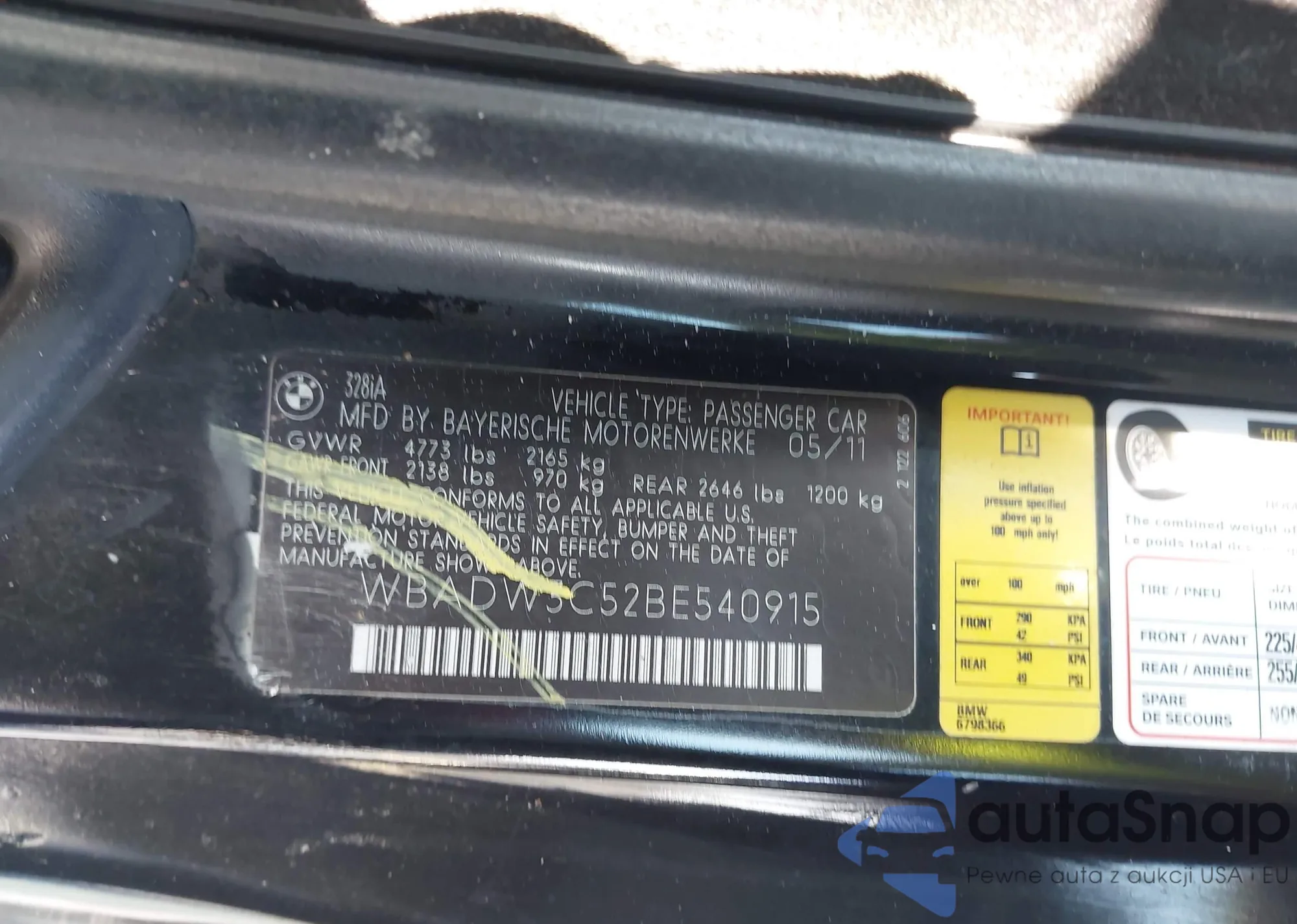 LOT: 42602611 VIN: WBADW3C52BE540915