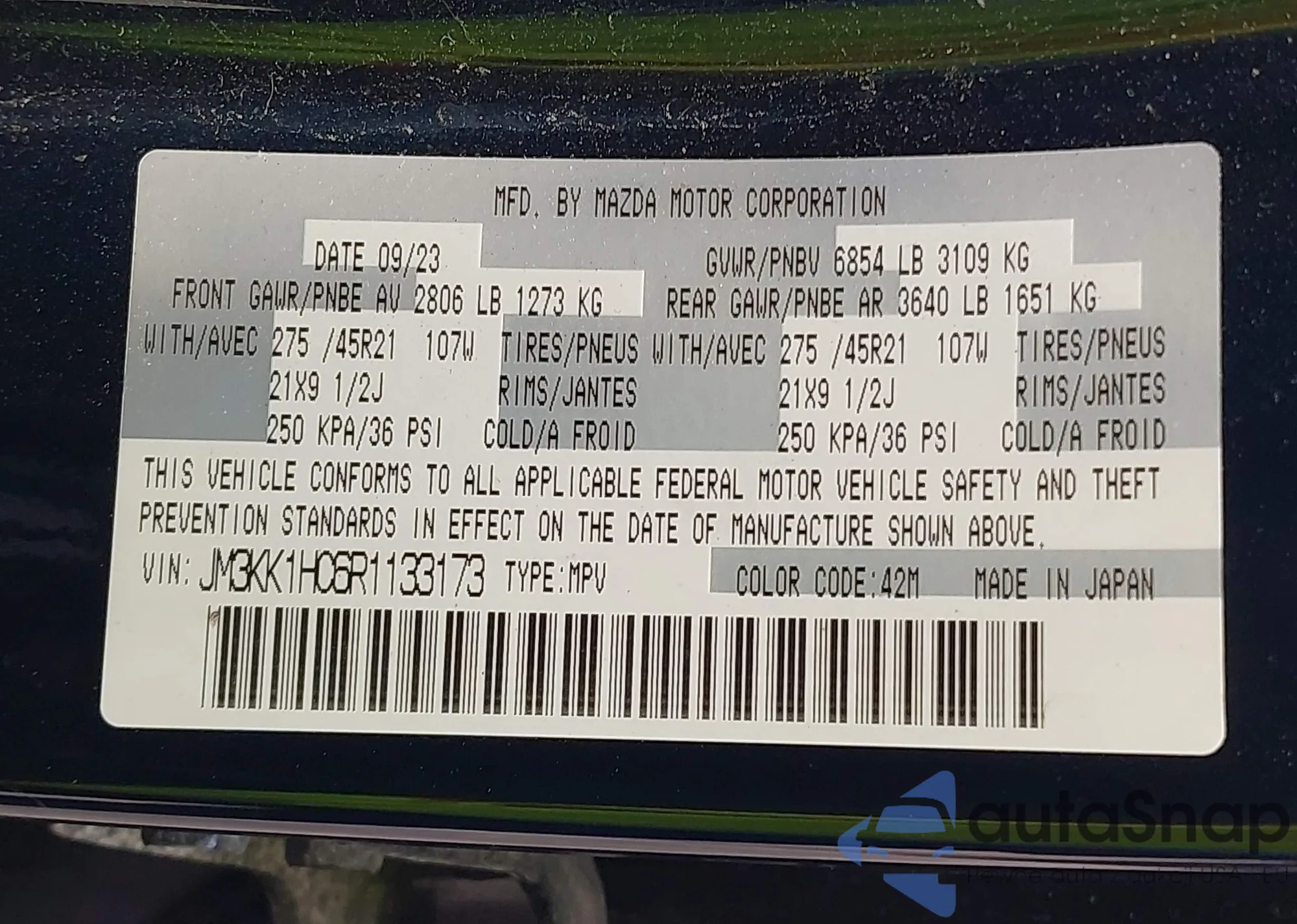 • VIN JM3KK1HC6R1133173
