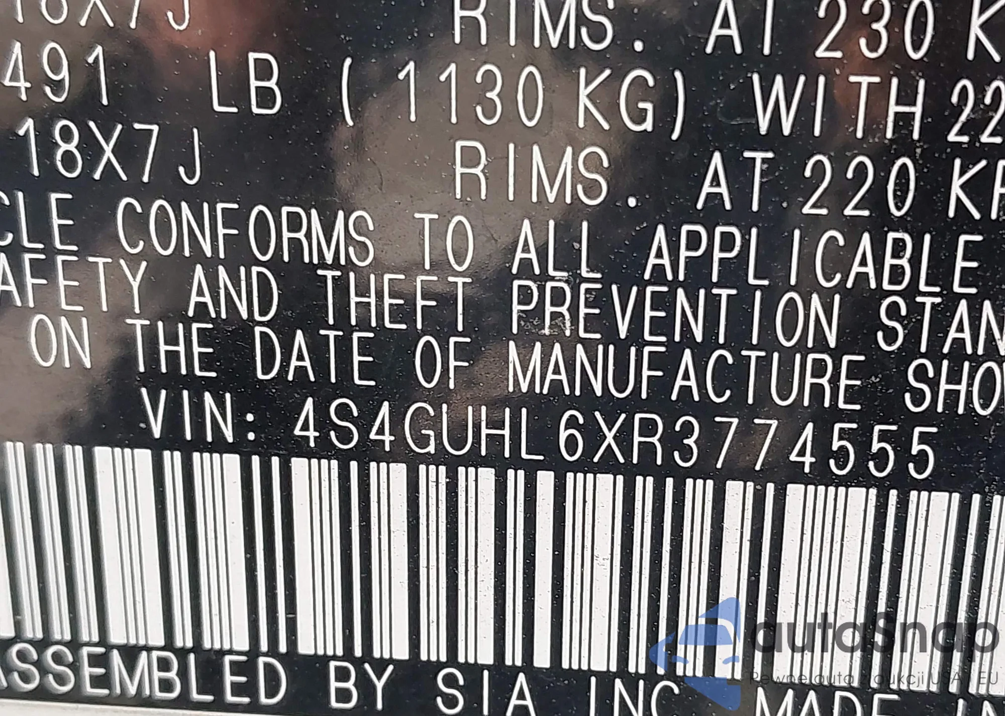 LOT: 42109397 VIN: 4S4GUHL6XR3774555