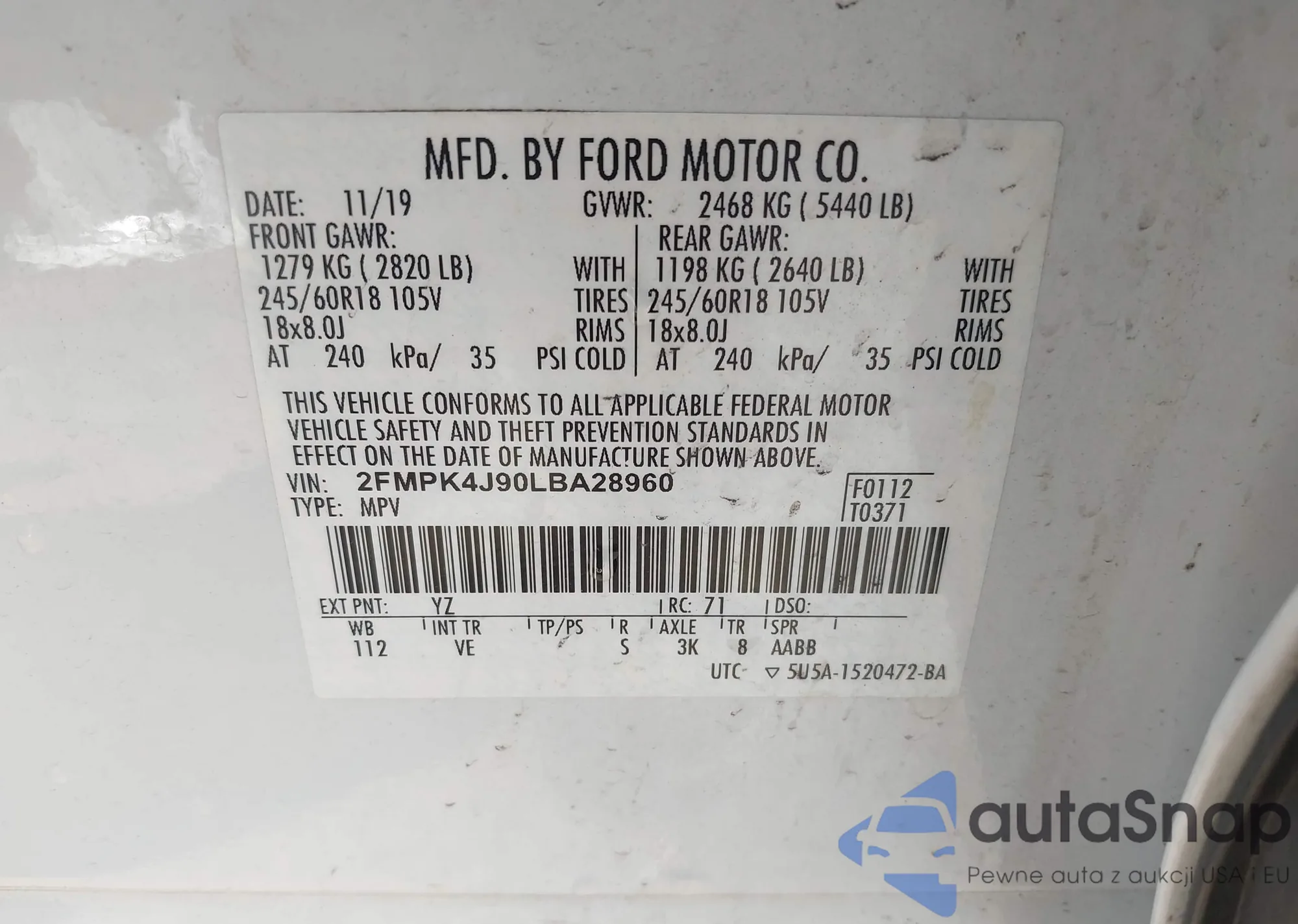 • VIN 2FMPK4J90LBA28960