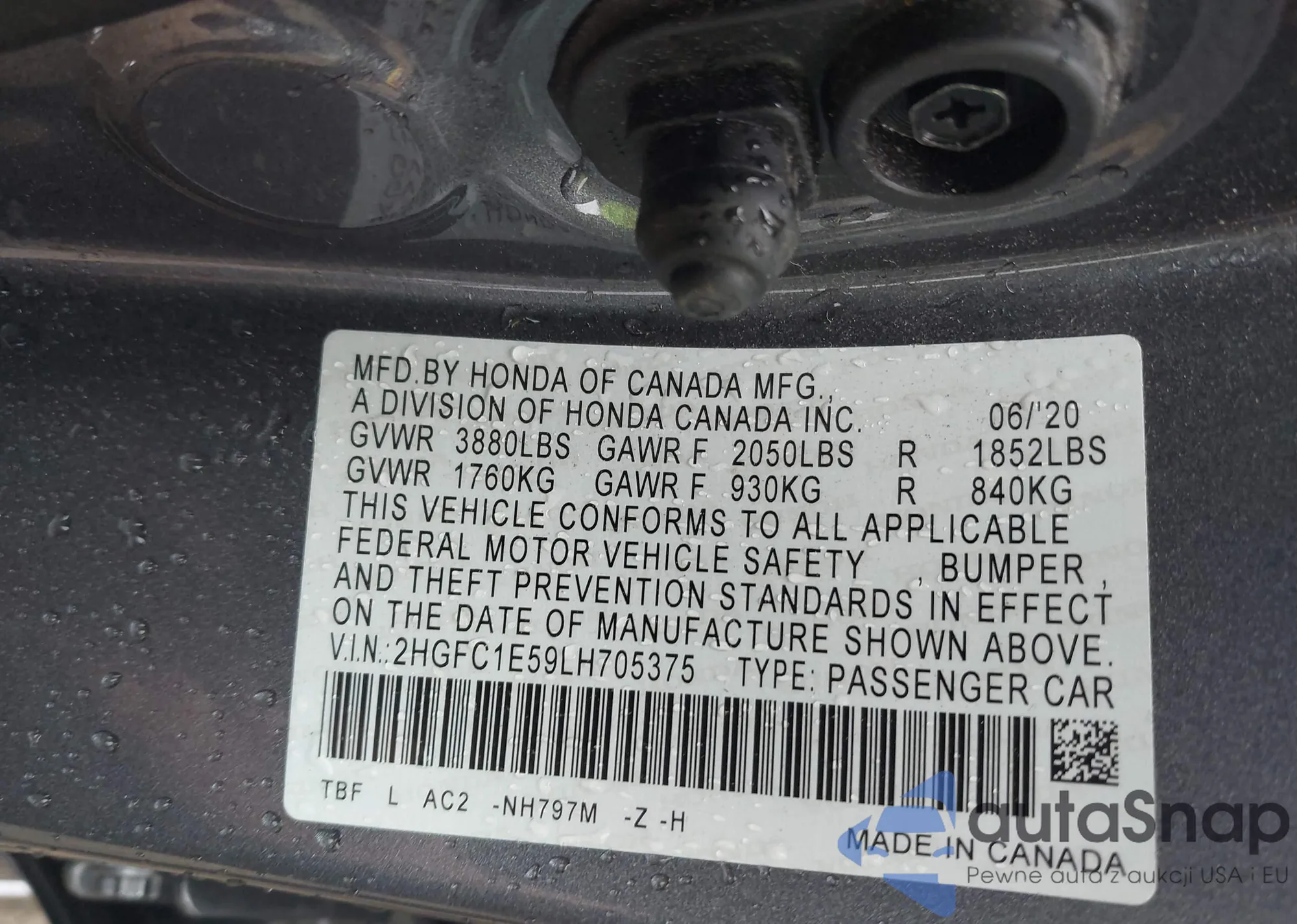 • VIN 2HKRW1H57KH501453