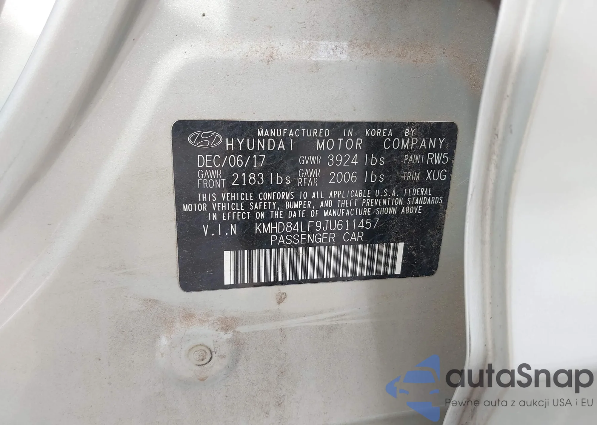 • VIN KMHD84LF9JU611457