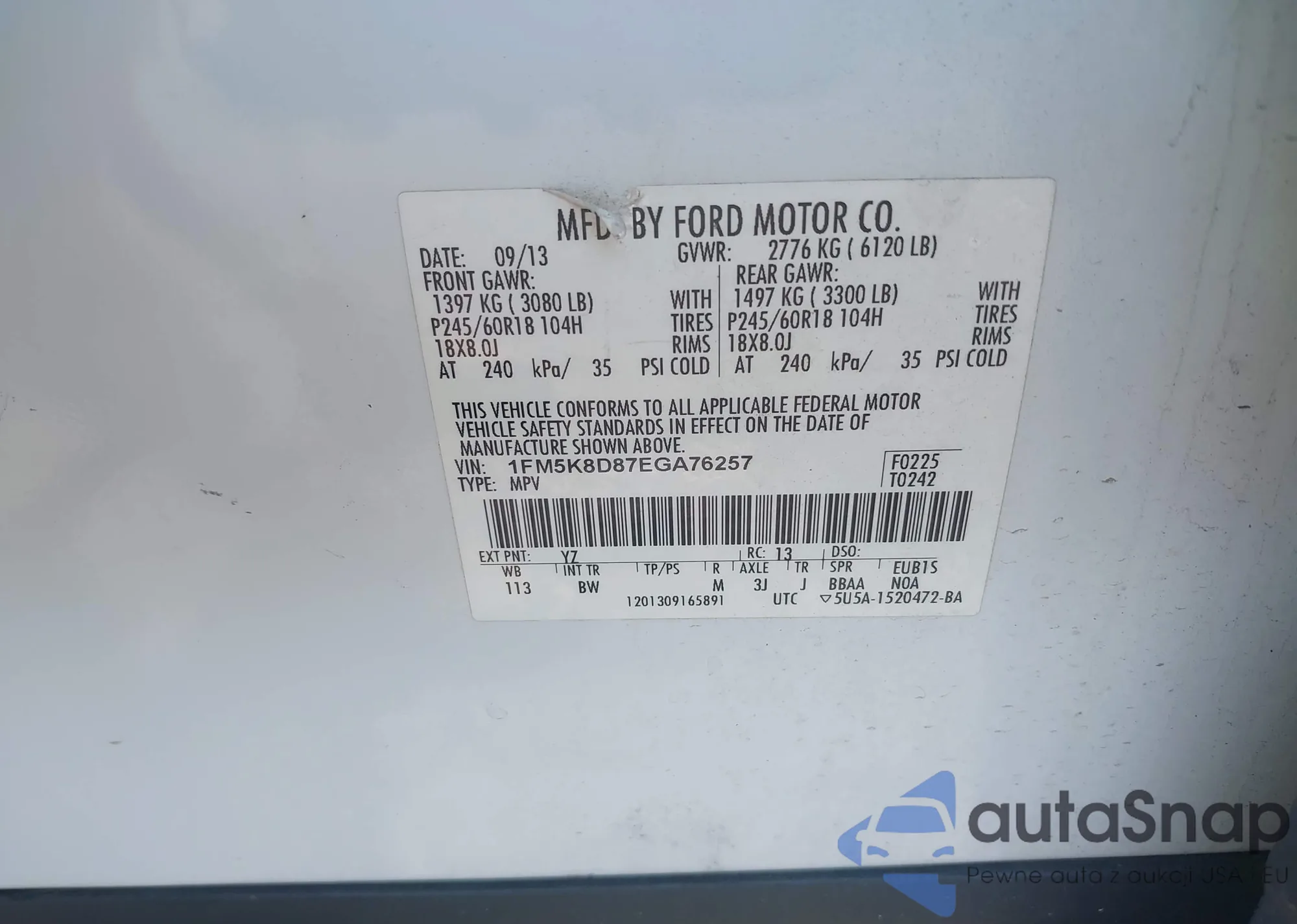 LOT: 42576980 VIN: 1FTDF17W8VLA67578