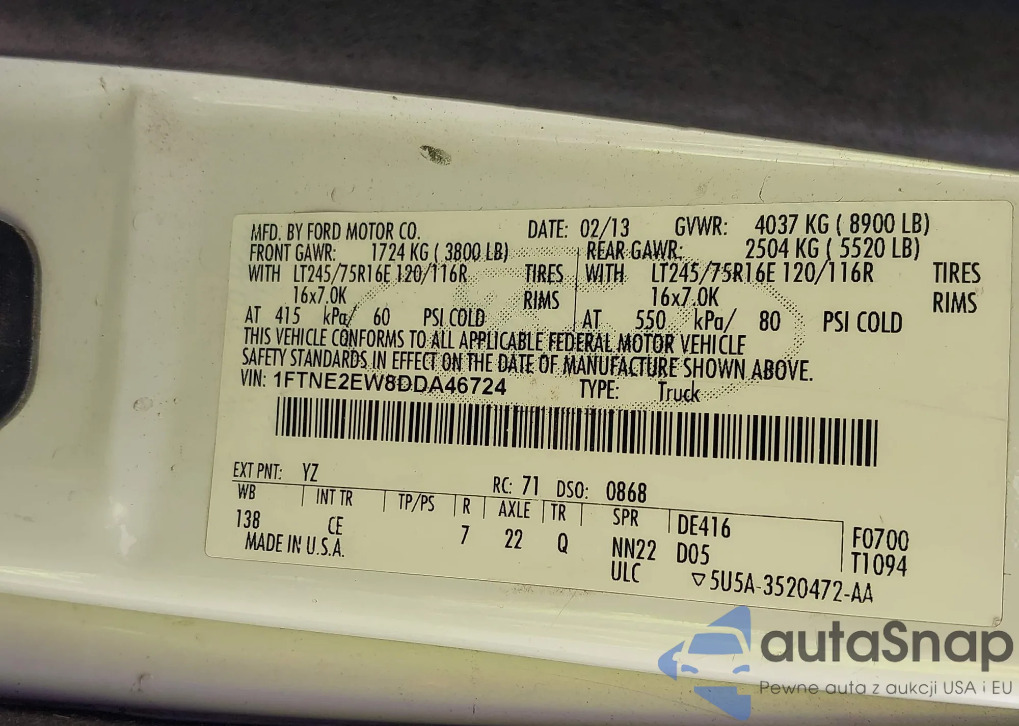 • VIN 1FTDF17W8VLA67578