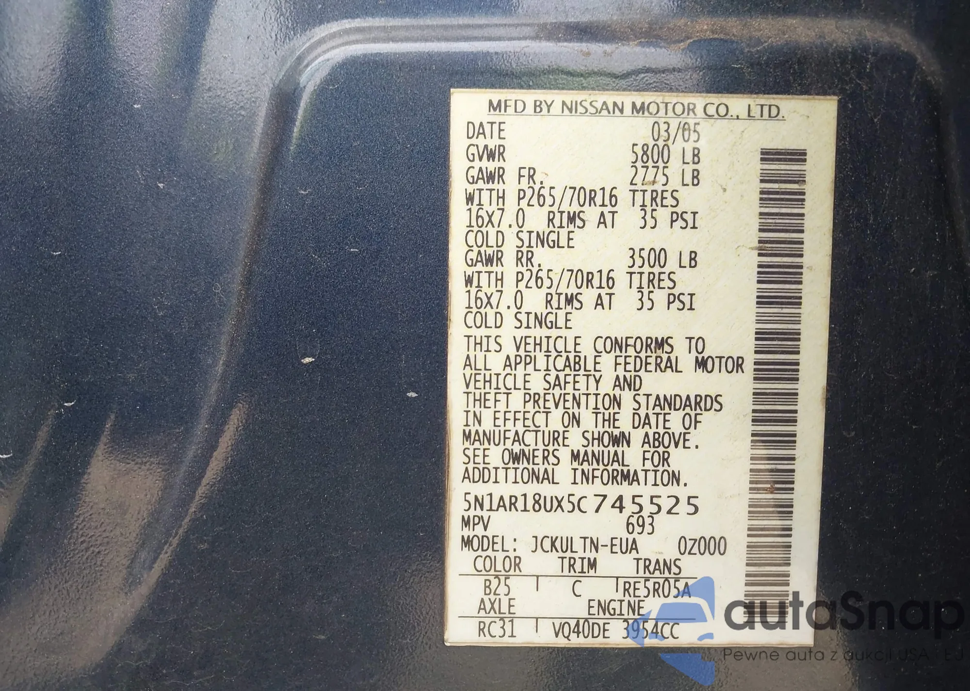 LOT: 42571579 VIN: 5N1AR18U76C666766