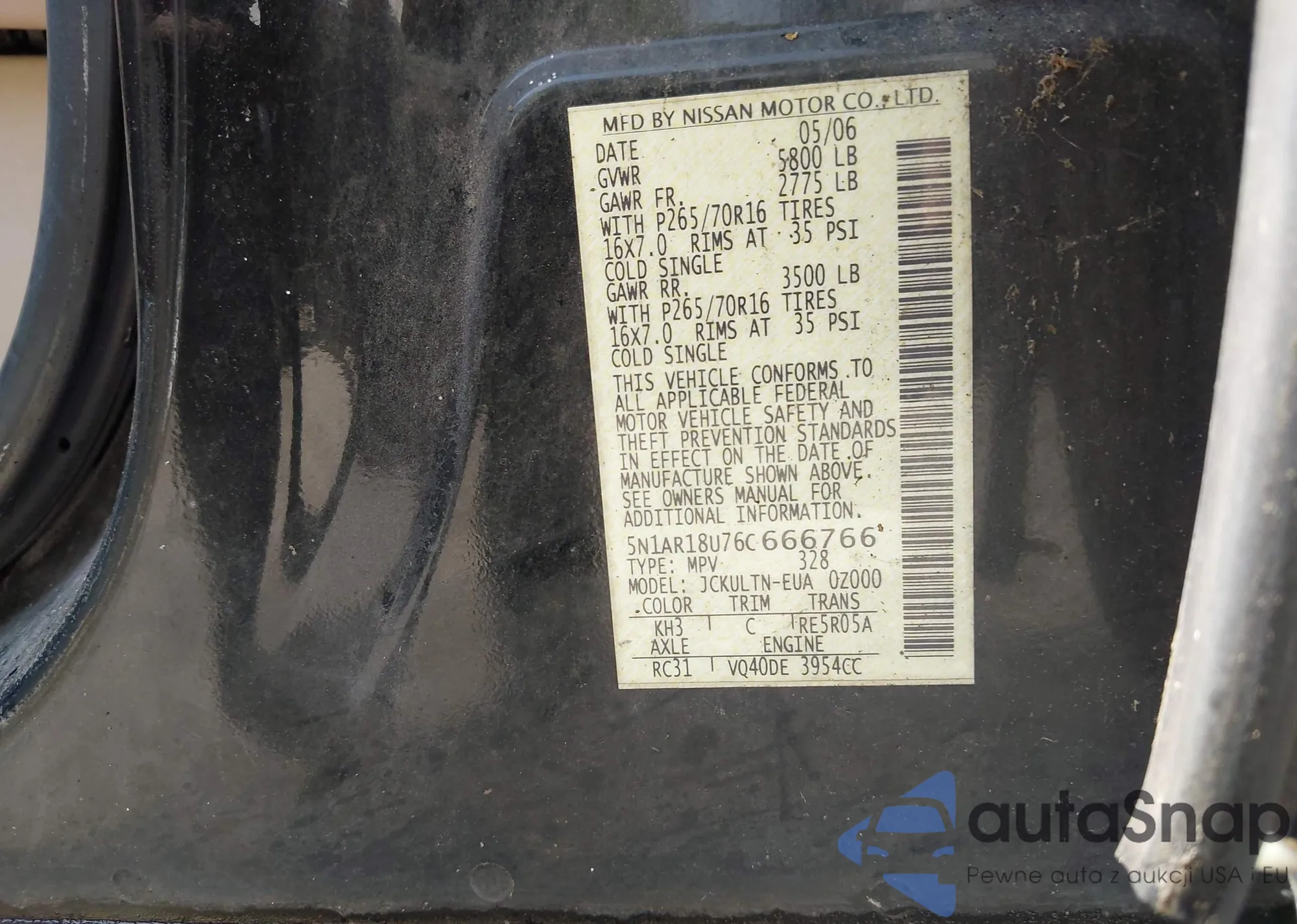 • VIN 5N1AR18U76C666766
