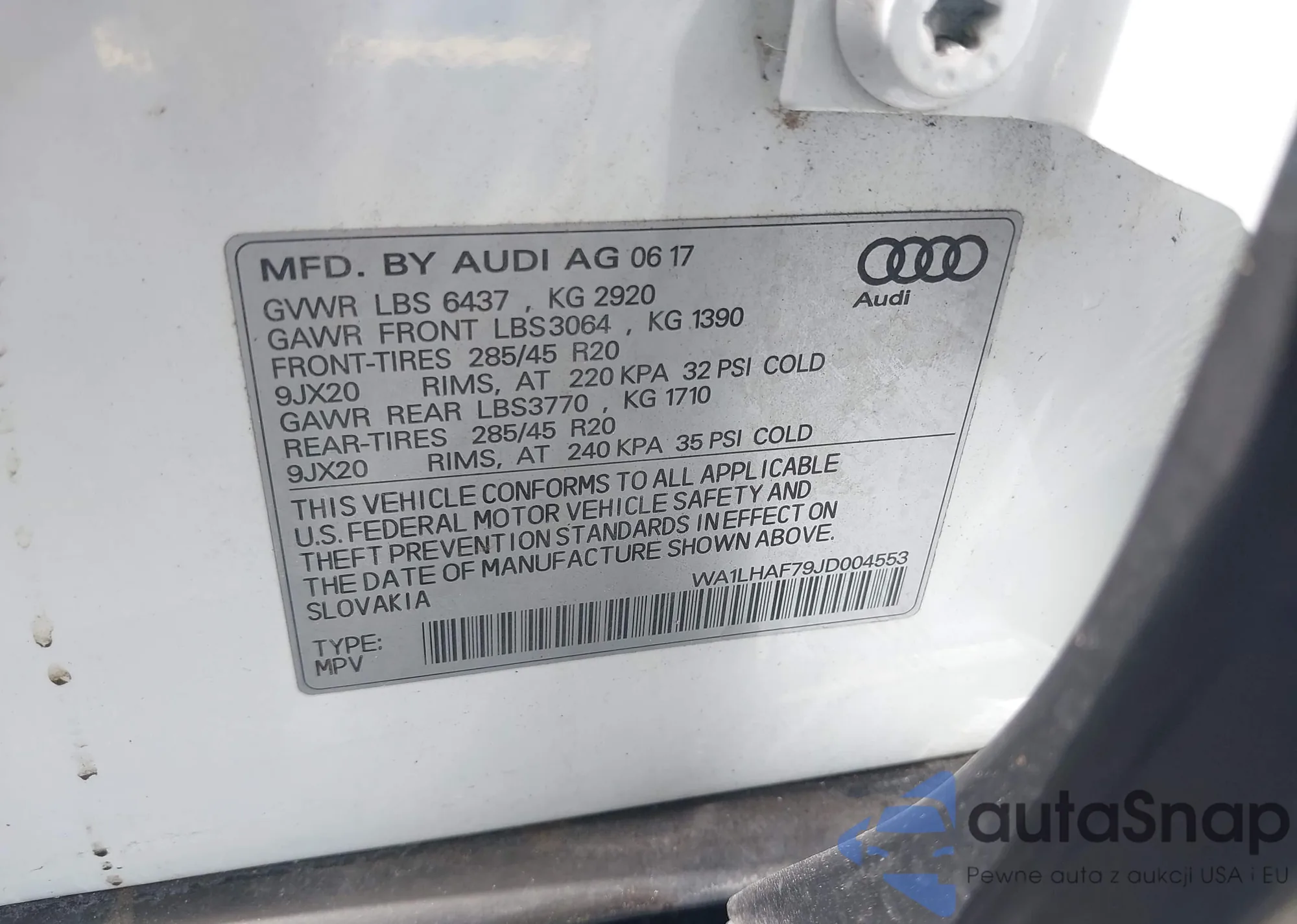 LOT: 42634078 VIN: JF2SJAEC2JH434567