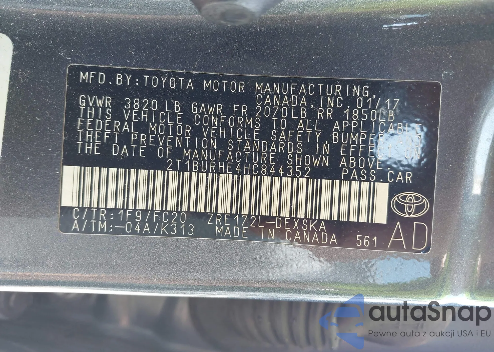 • VIN 2T1BURHE4HC844352