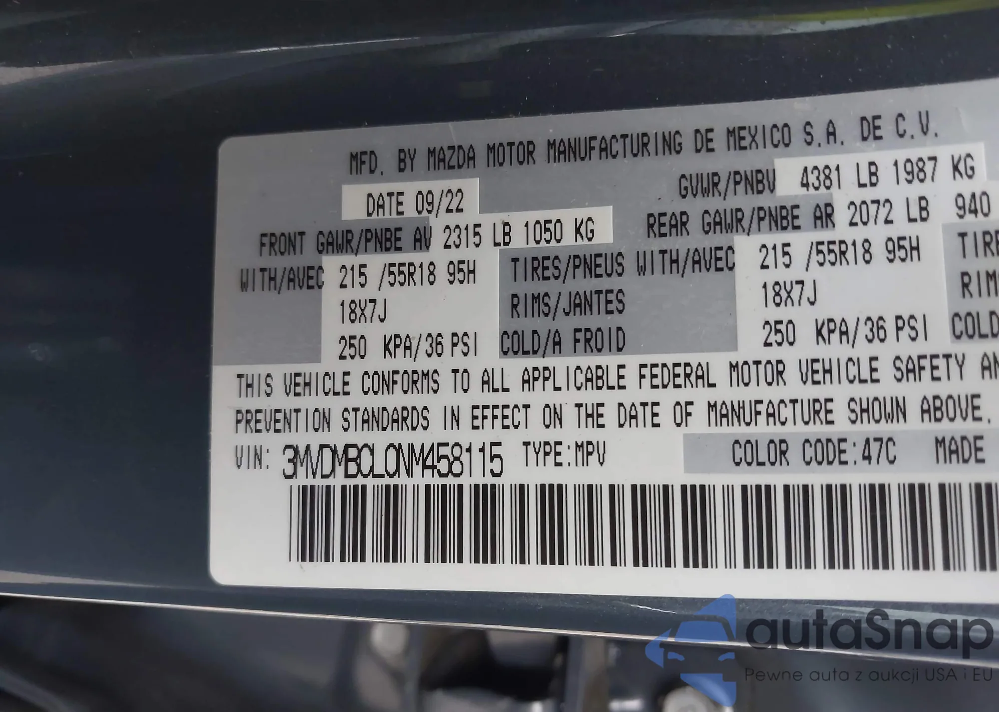 • VIN 3MVDMBCL0NM458115