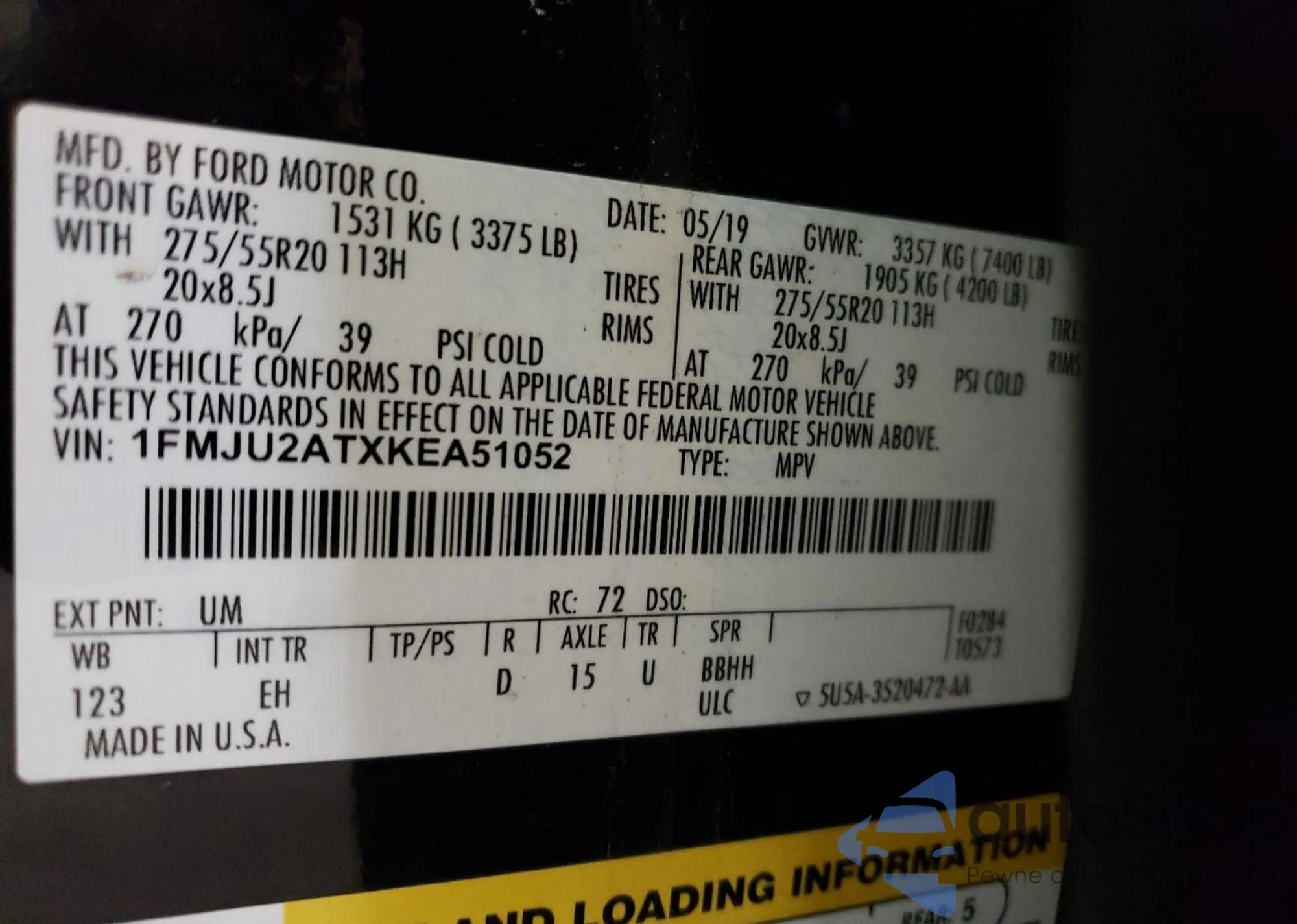 • VIN 1FMJU2ATXKEA51052