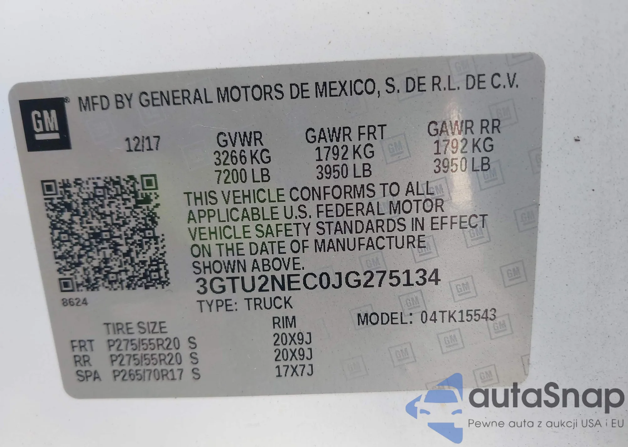 • VIN 3GTU2NEC0JG275134