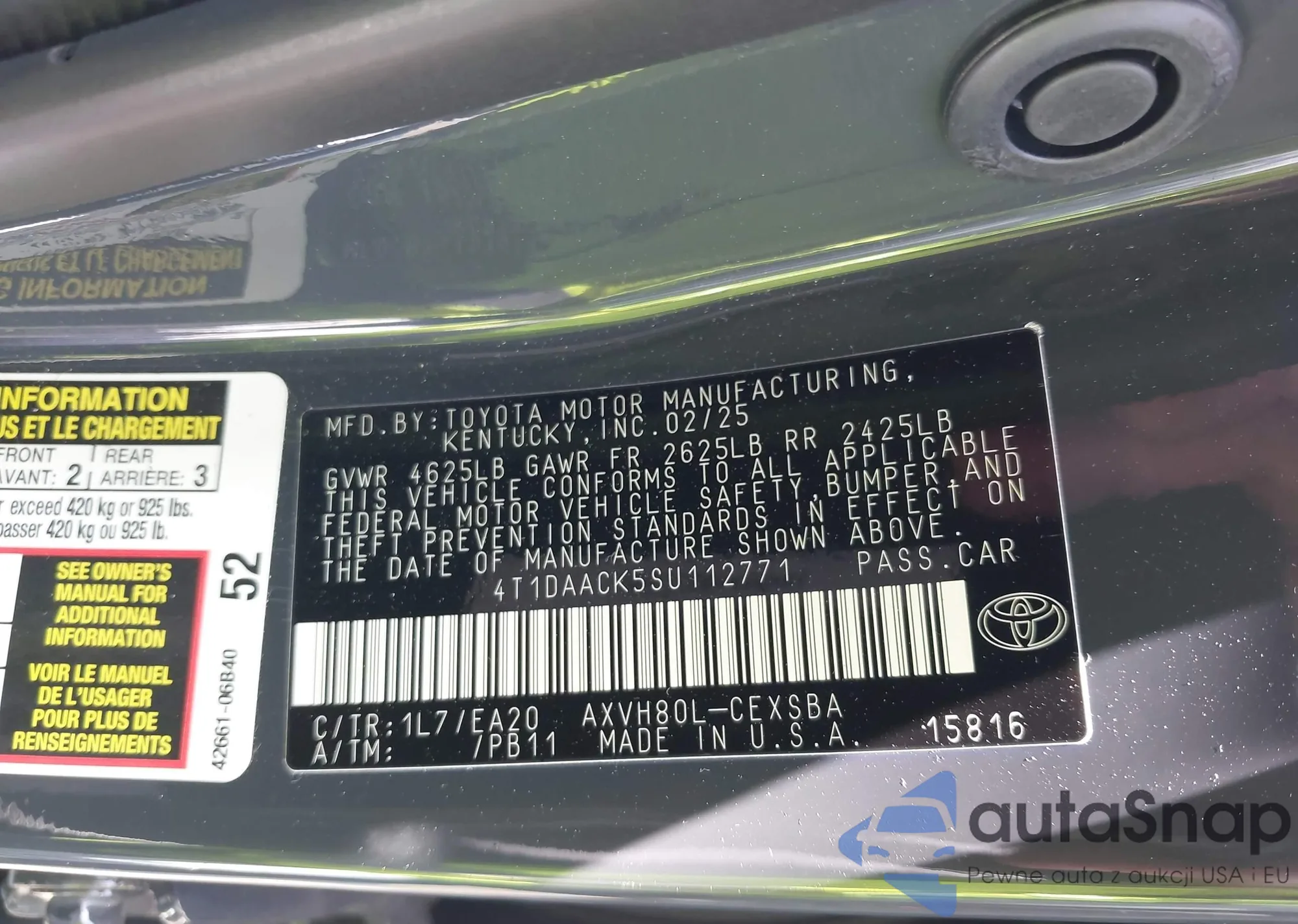 LOT: 42339033 VIN: 4T1DAACK5SU112771