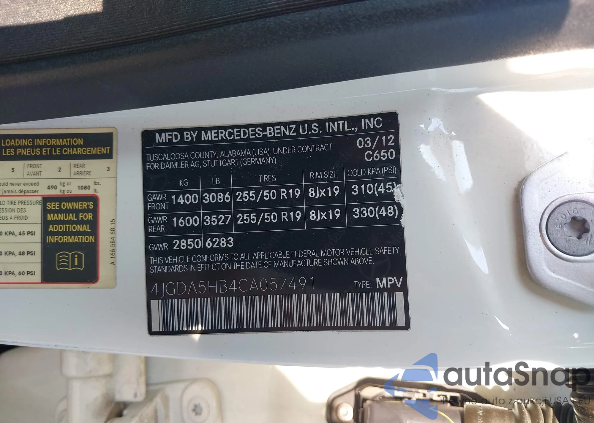 • VIN 4JGDA5HB4CA057491