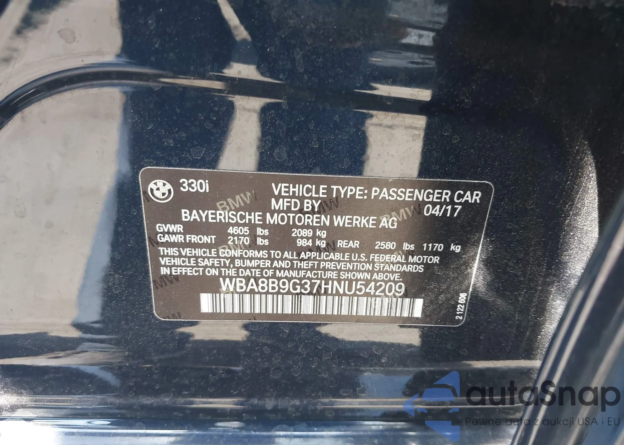 LOT: 42714703 VIN: WBA8B9G37HNU54209