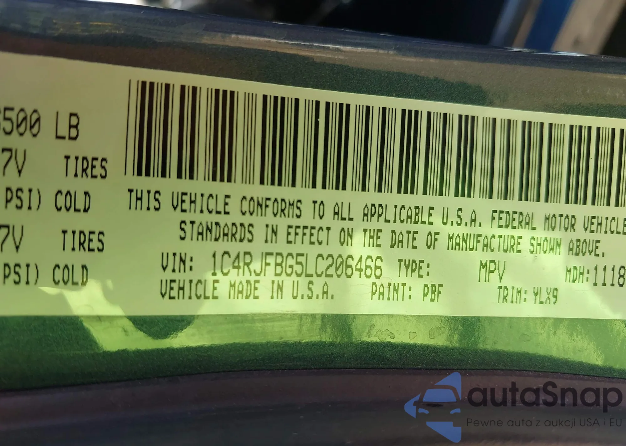 • VIN 1C4RJFBG5LC206466