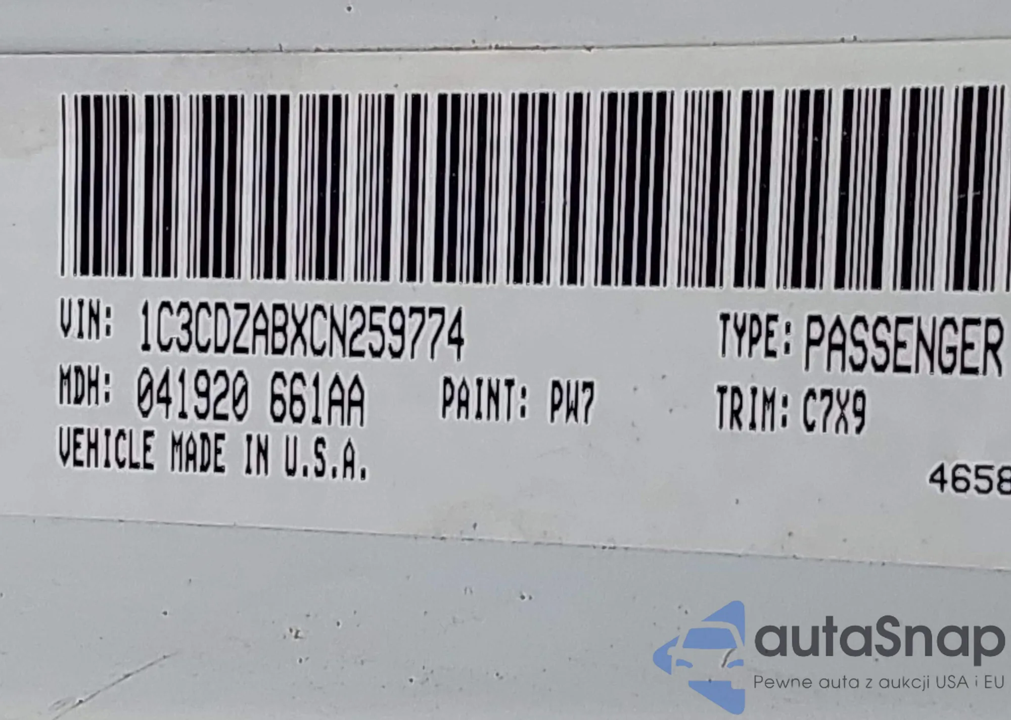 LOT: 42499350 VIN: 1C3CDZABXCN259774