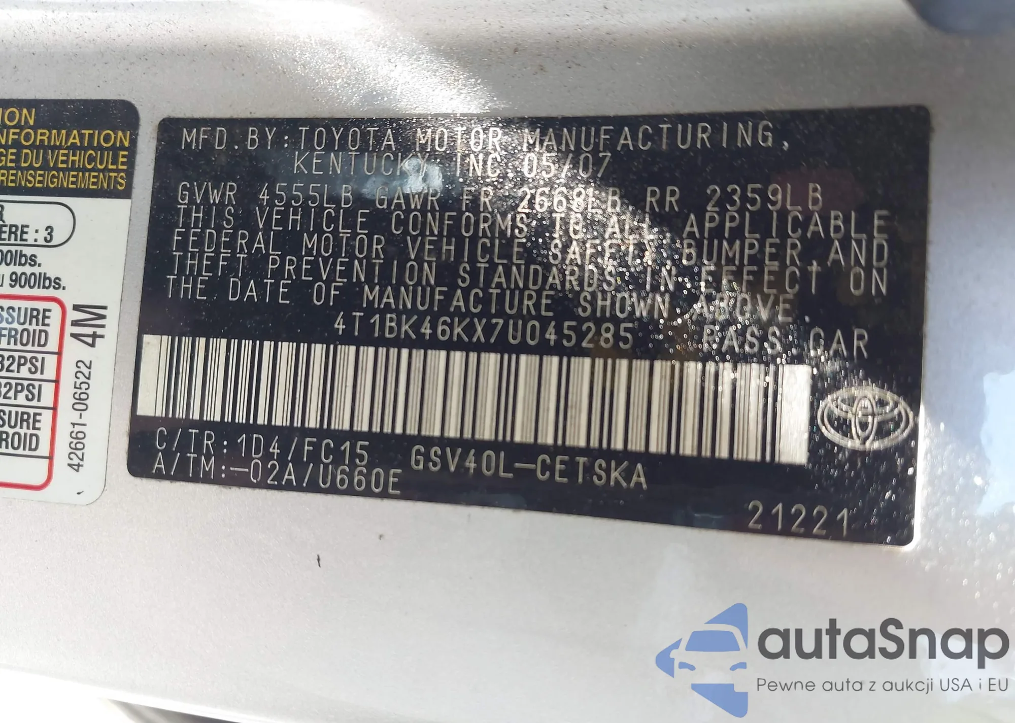 • VIN 4T1BK46KX7U045285