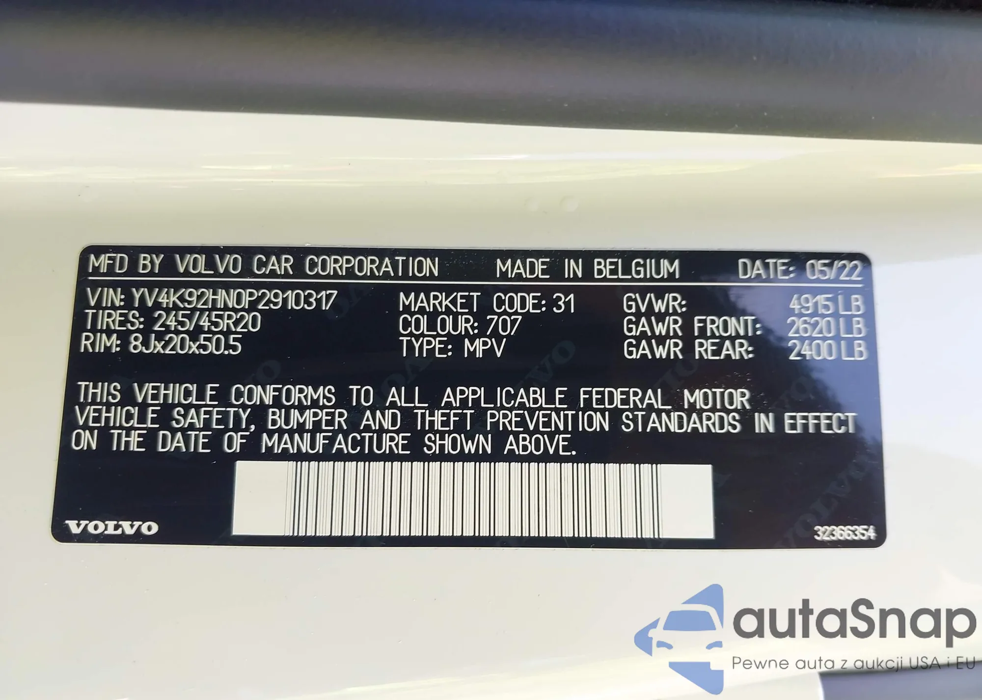 LOT: 42319103 VIN: MAJ3S2FE5MC453109