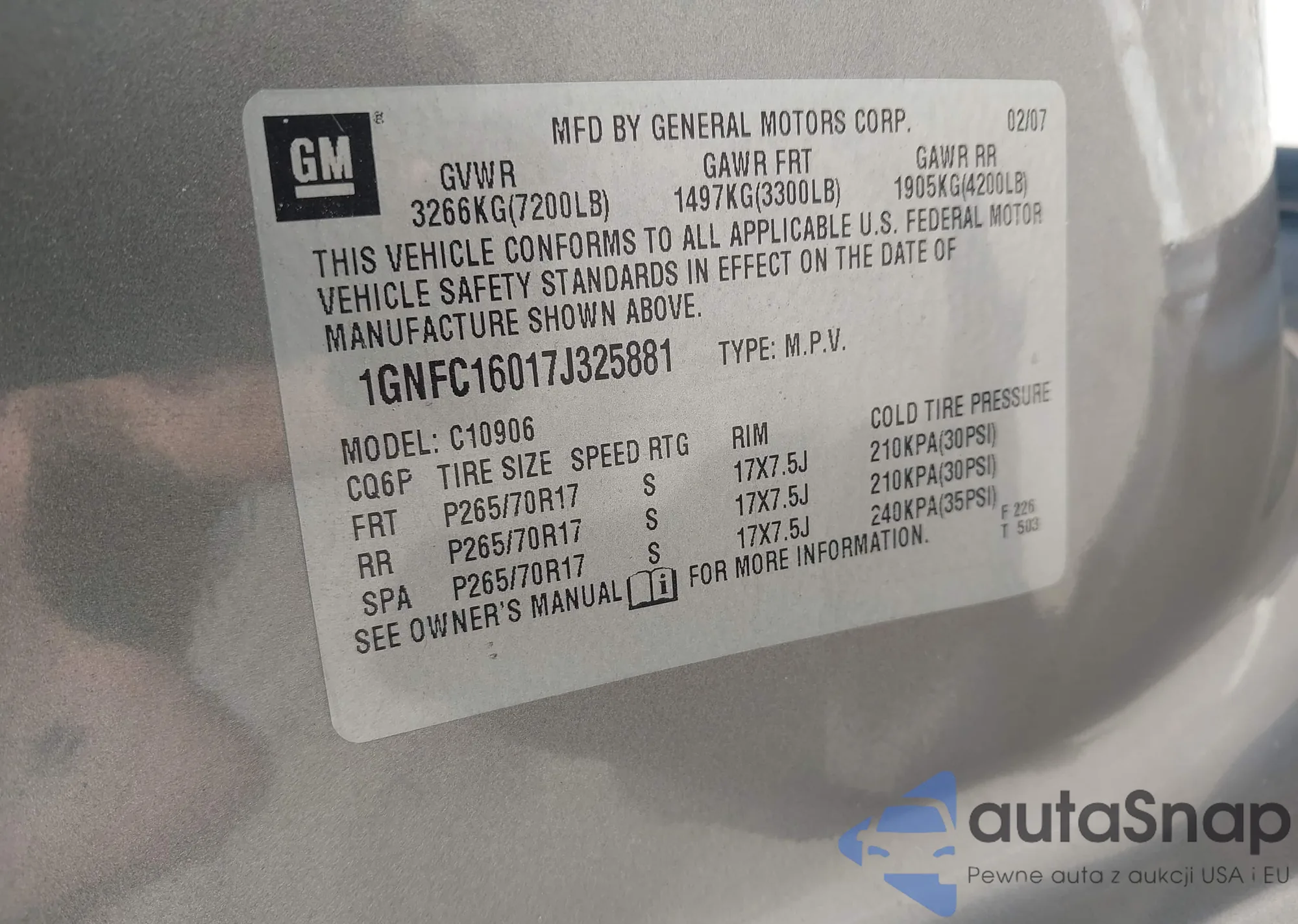 LOT: 42441282 VIN: 1GNFC16017J325881