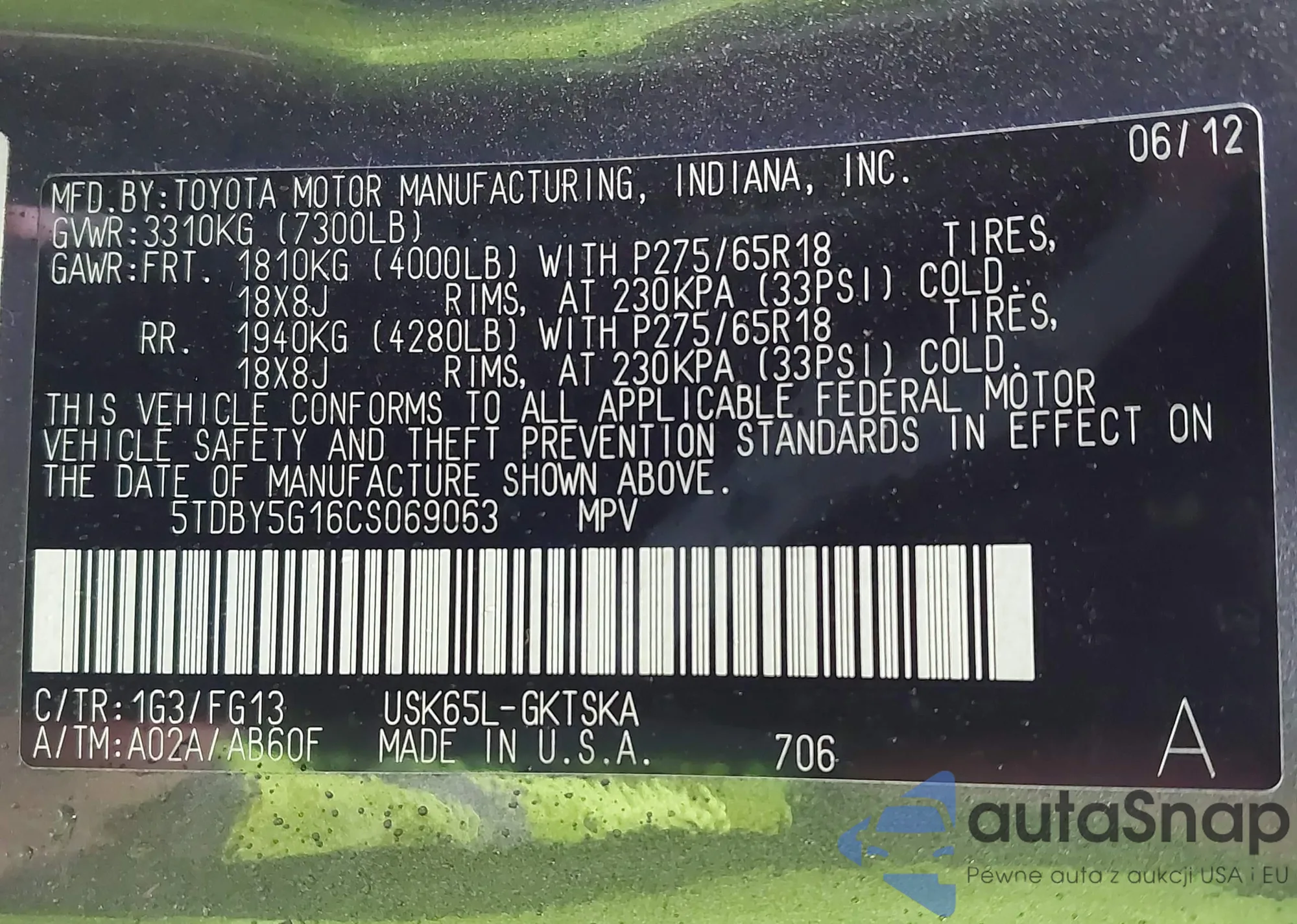 • VIN 5TDDZ3DC6HS150071