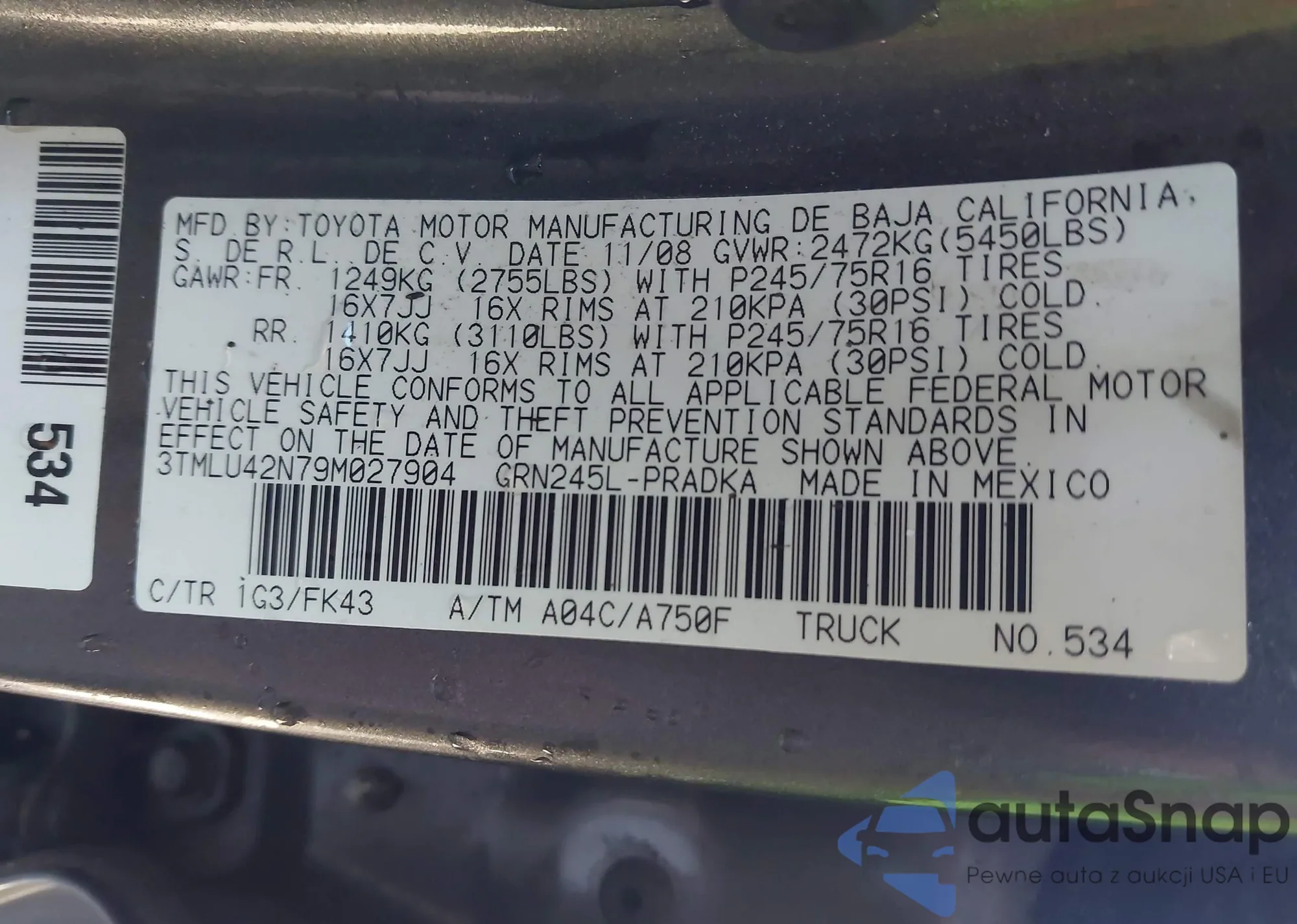 LOT: 42393453 VIN: JTEBU5JR6A5030742