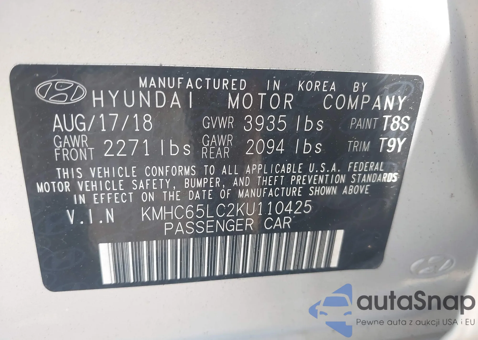 LOT: 42727296 VIN: KMHC65LC2KU110425