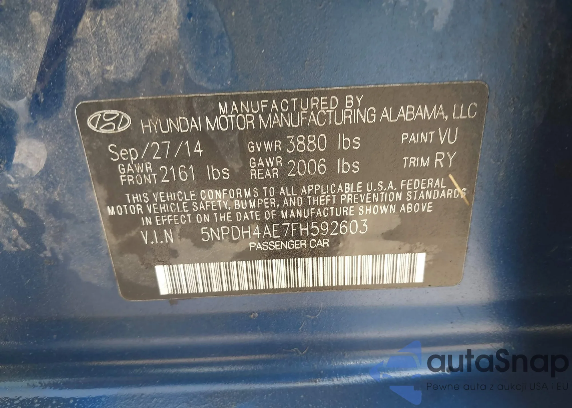 • VIN 5NPDH4AE7FH592603