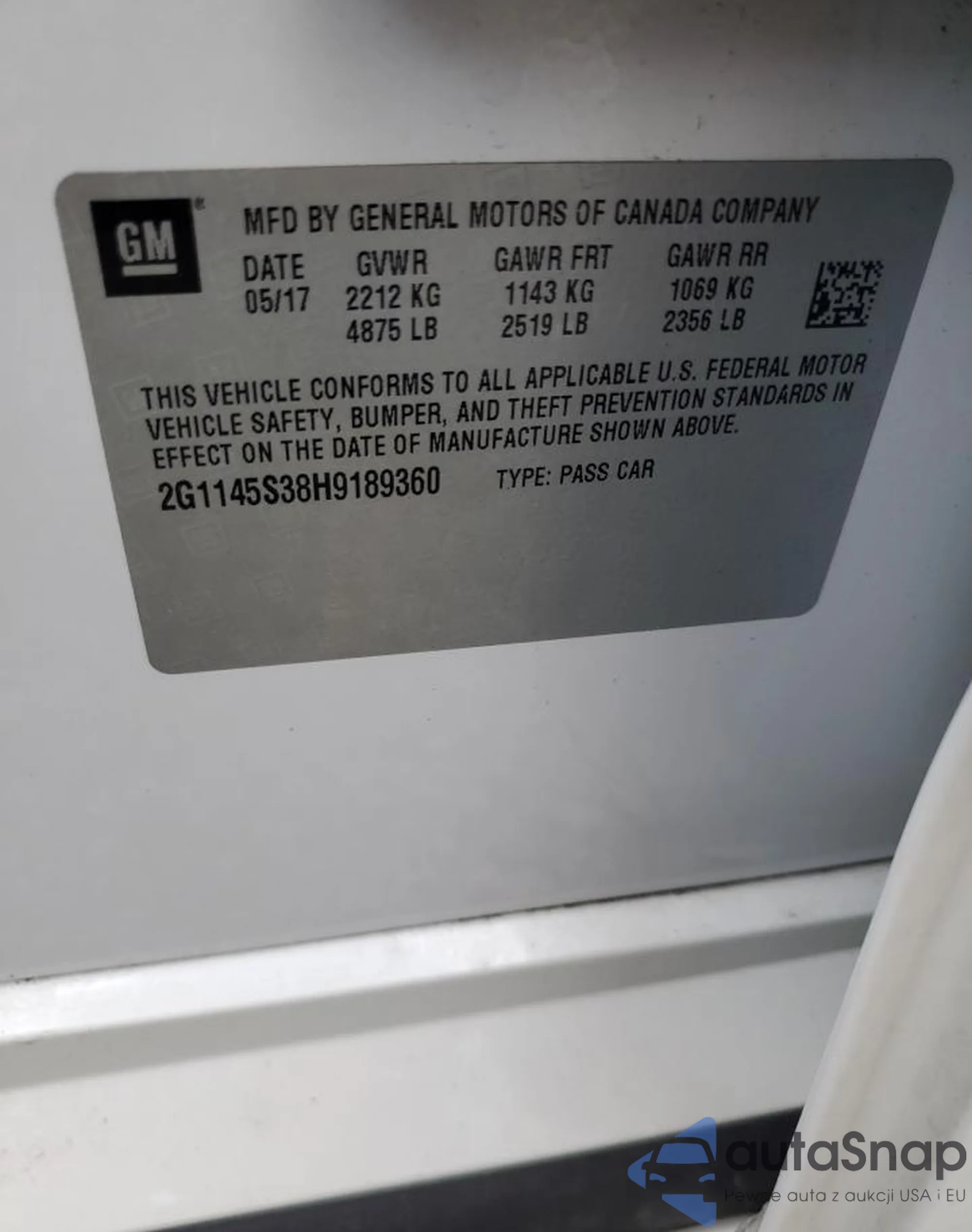 LOT: 64002805 VIN: 2G1145S38H9189360
