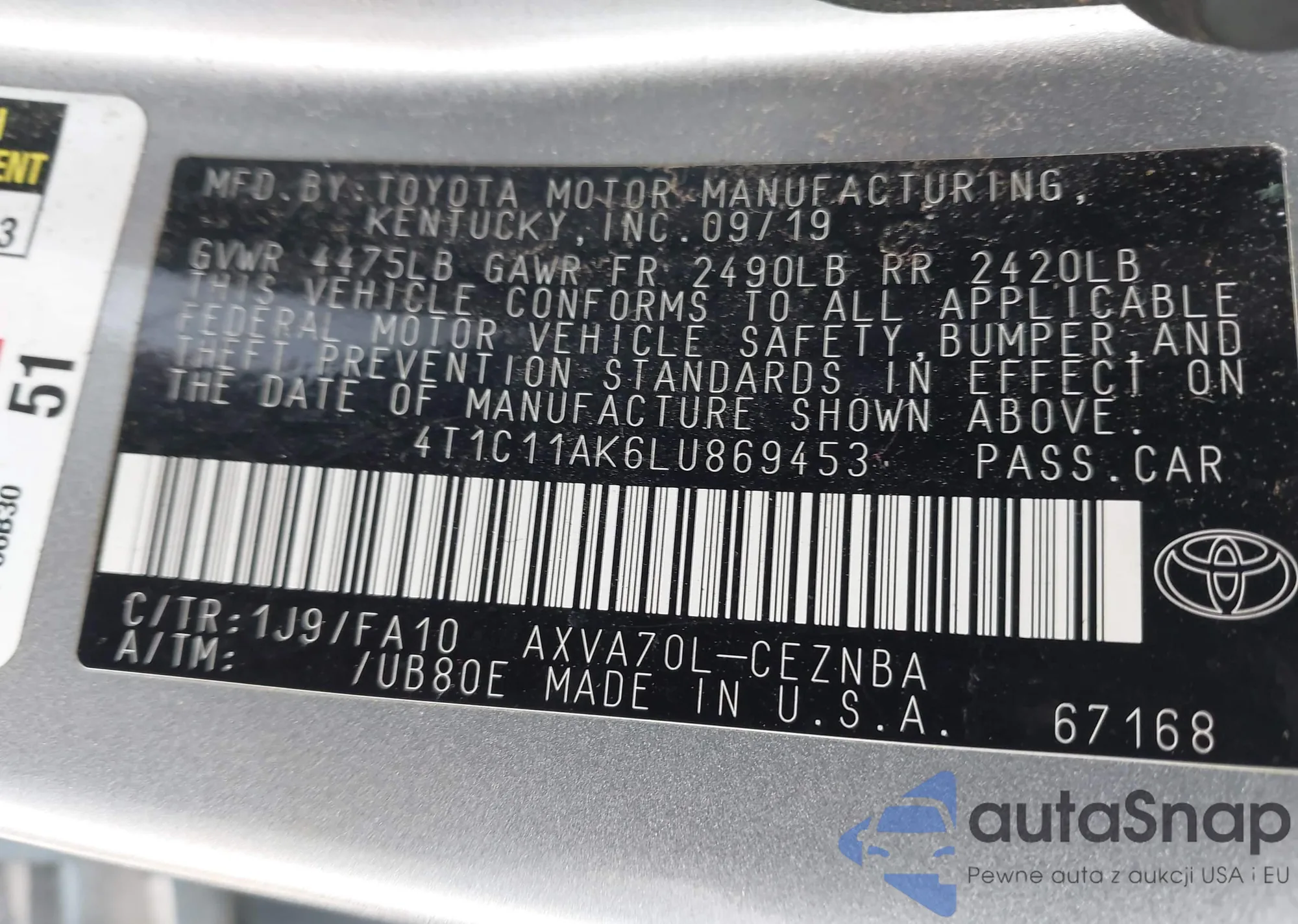 • VIN 4T1BK1EB8GU194309