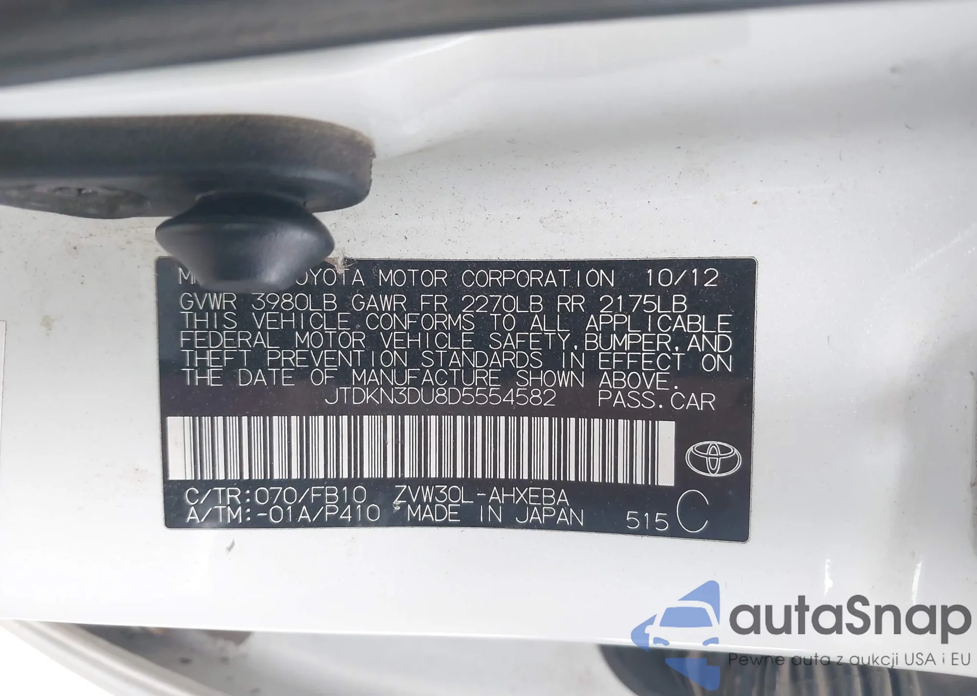 LOT: 42443676 VIN: JTDKN3DU8D5554582