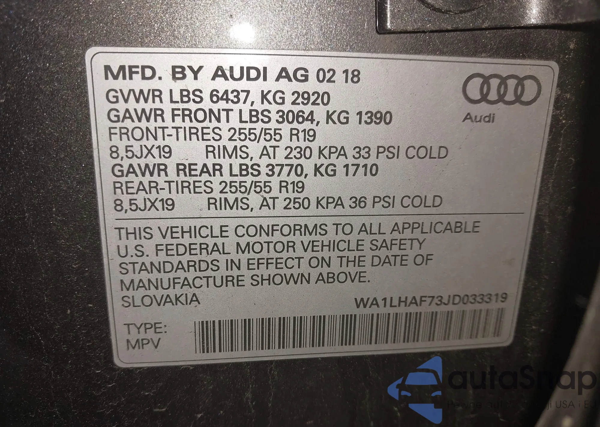 LOT: 42491771 VIN: WA1LHAF73JD033319