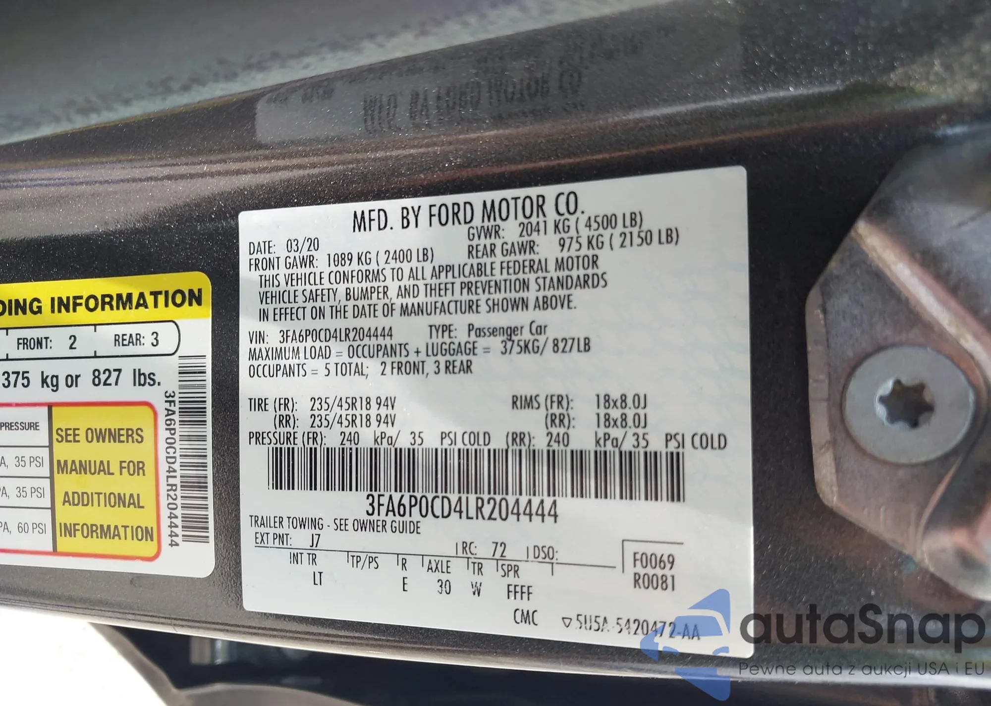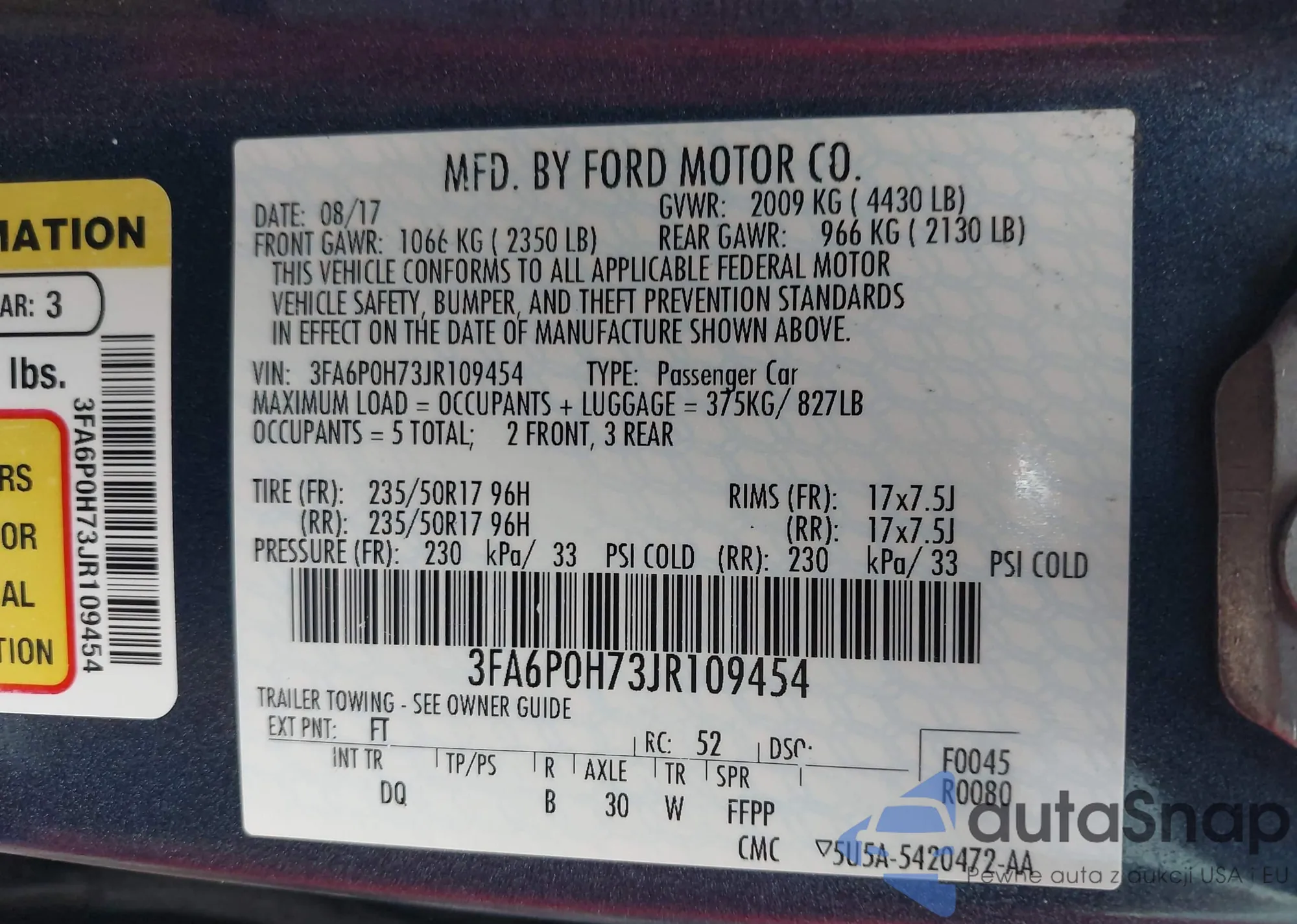 • VIN 3FA6P0H73JR109454