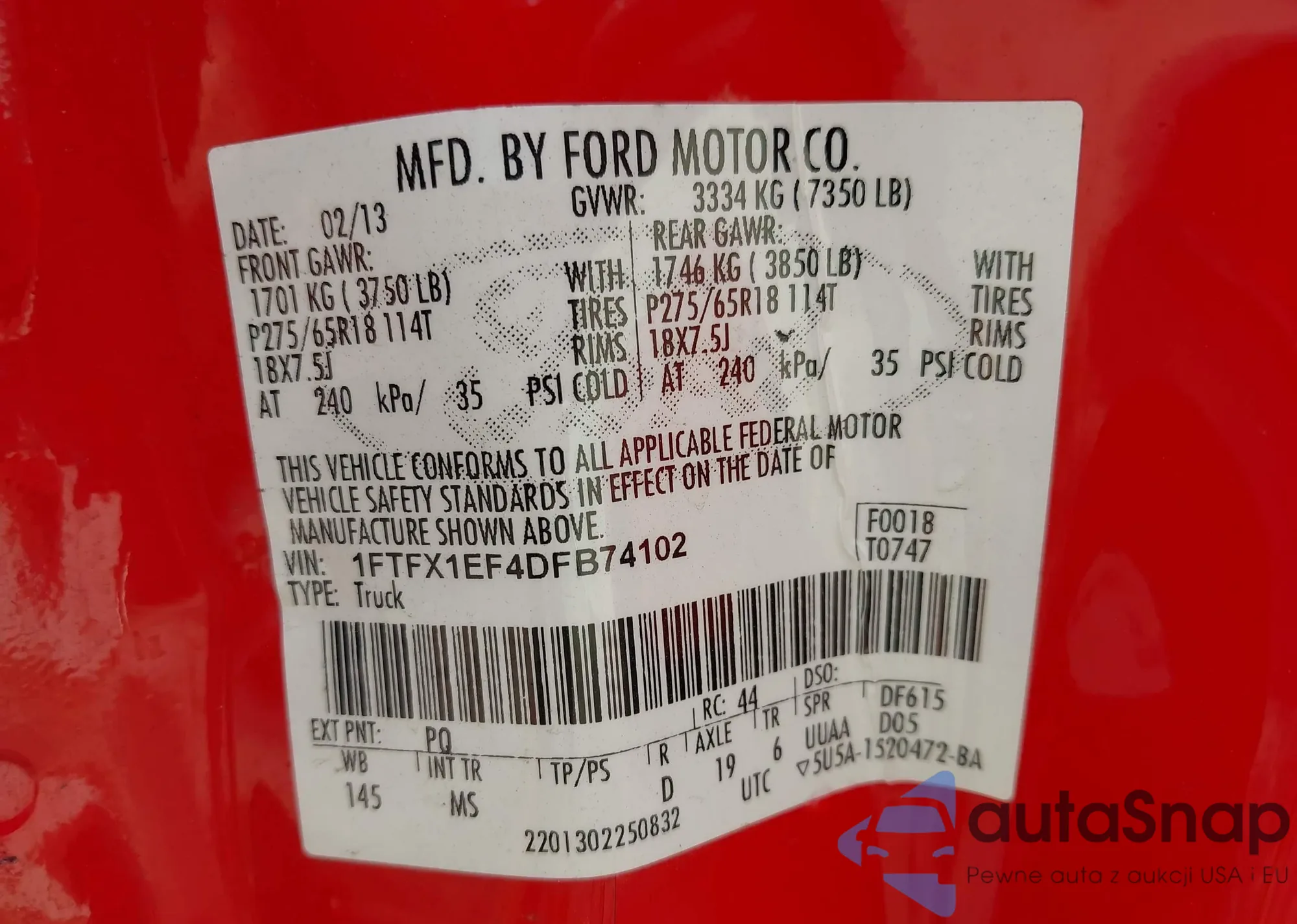 • VIN 1FTFX1EF4DFB74102