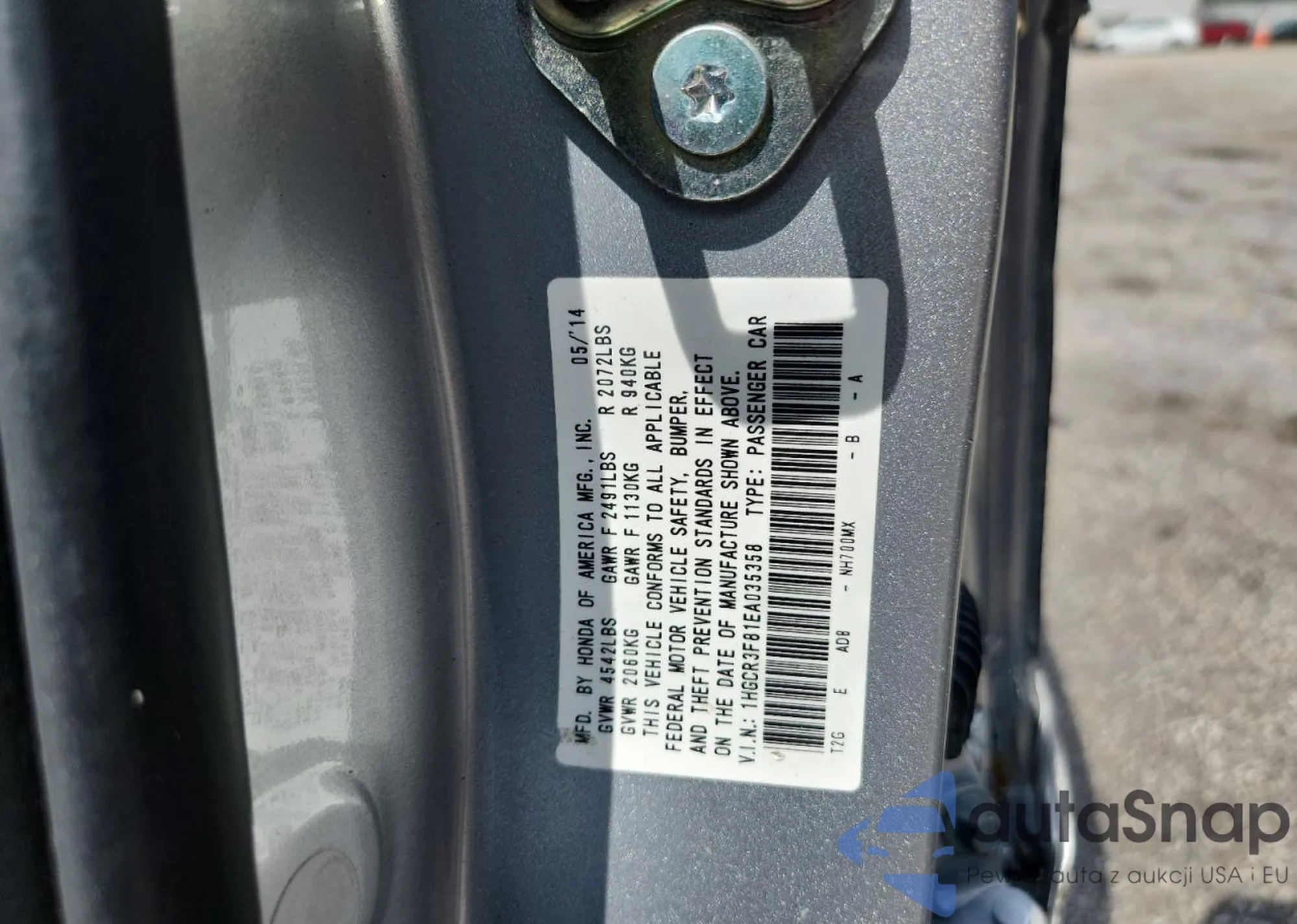 LOT: 65181765 VIN: JHLRE48587C061186