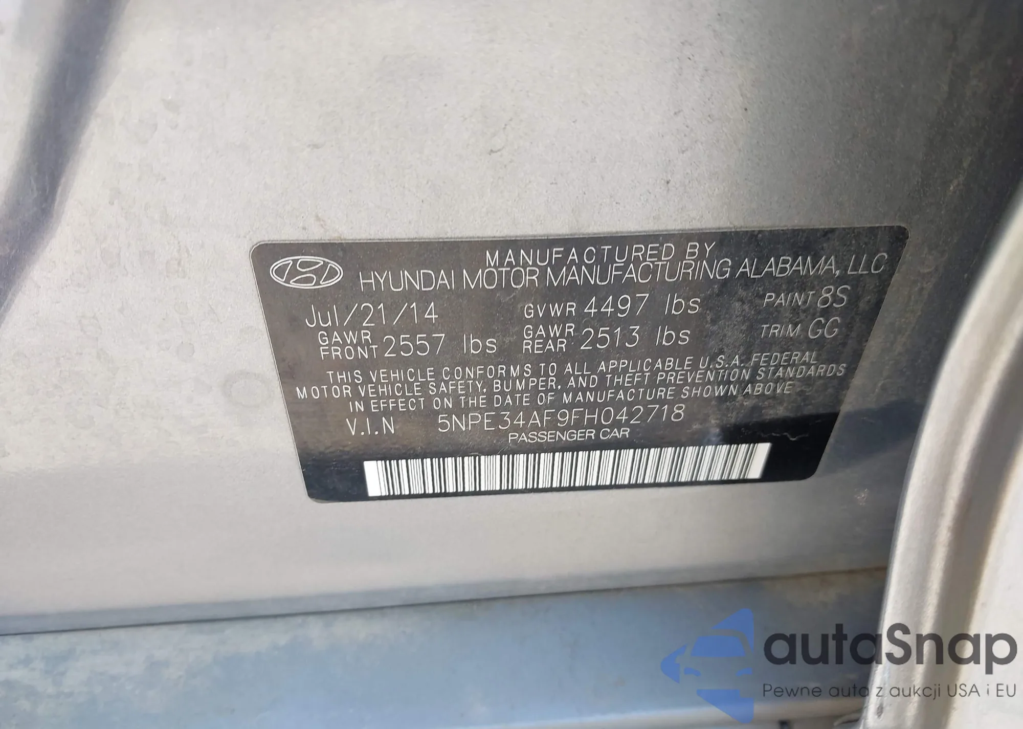 LOT: 42051136 VIN: 5NPE34AF9FH042718