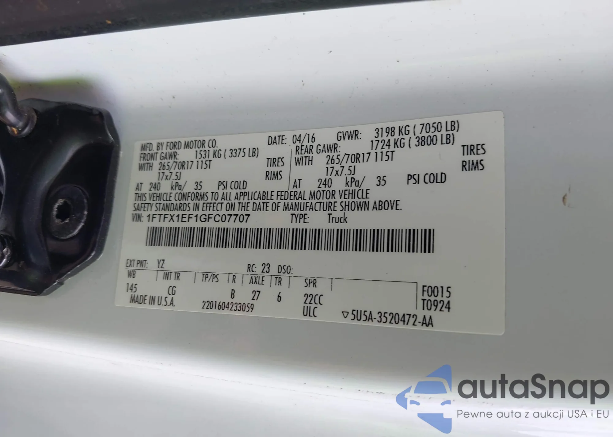 • VIN 5FPYK3F78NB028776