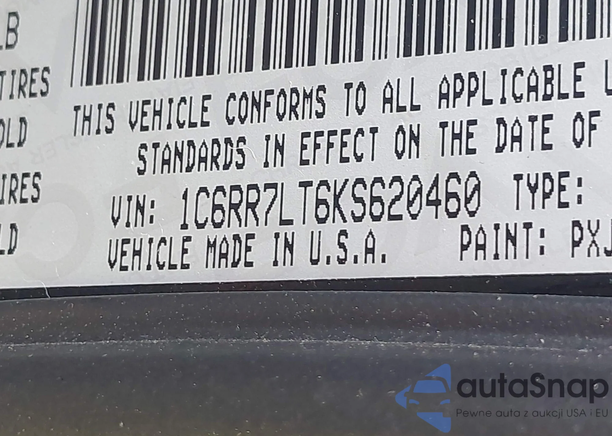 • VIN 1C6RR7LT6KS620460